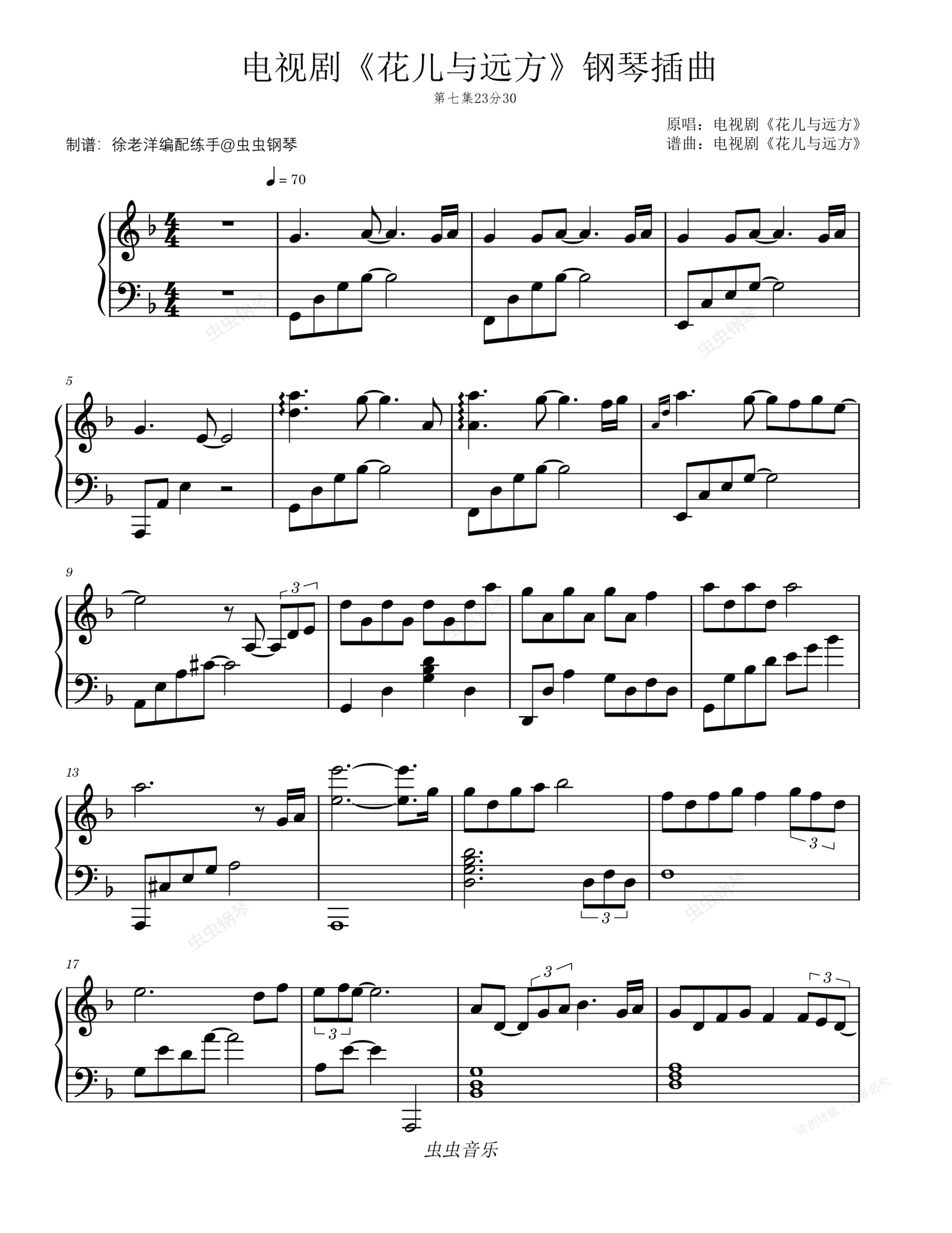 钢琴谱:电视剧《花儿与远方》钢琴插曲