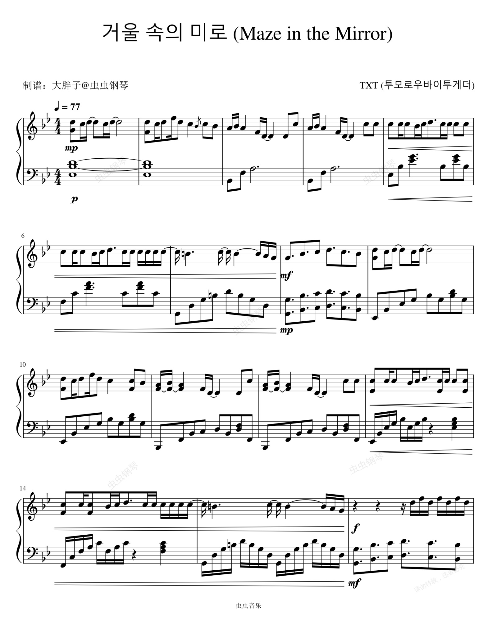 钢琴谱:거울 속의 미로 (Maze in the Mirror) - TOMORROW X TOGETHER