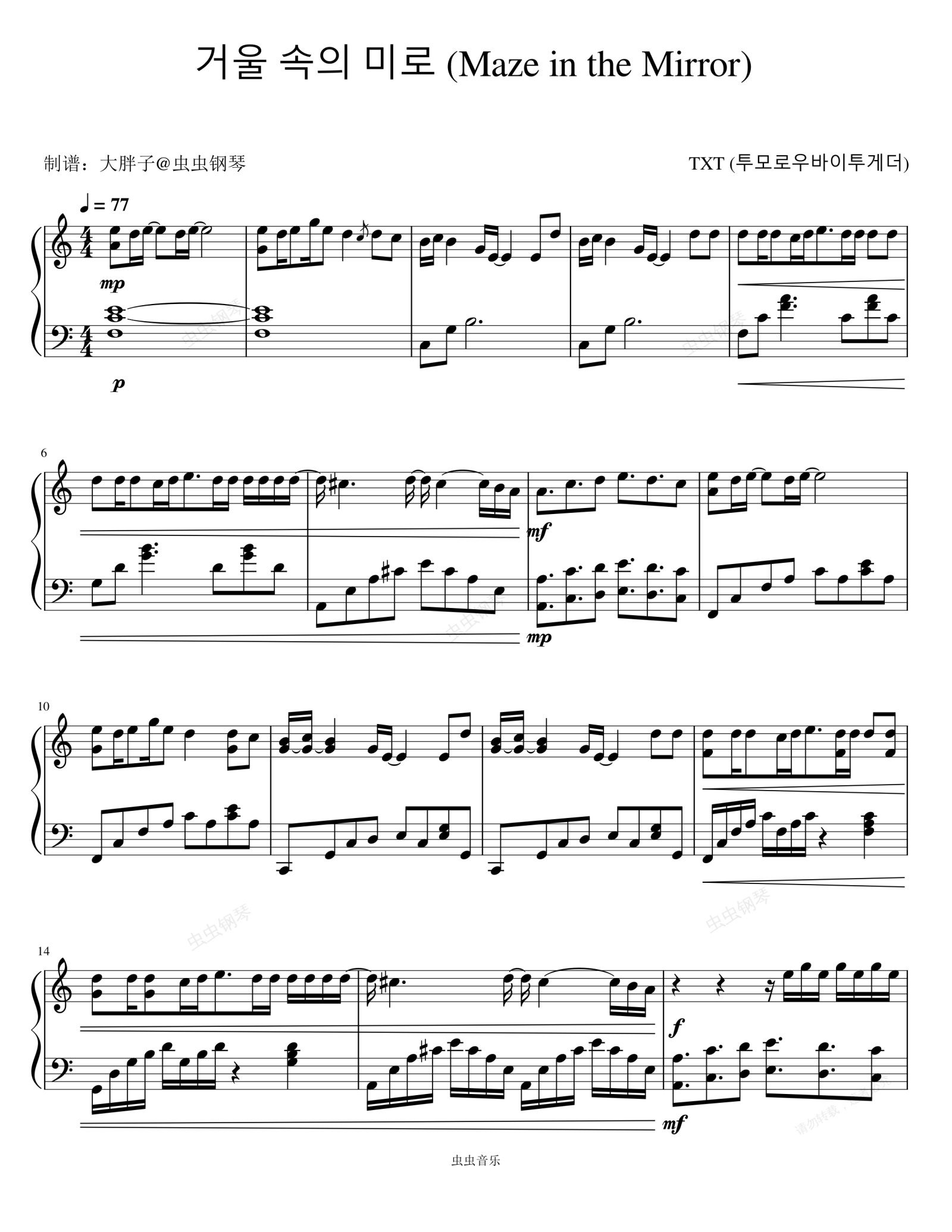 钢琴谱:거울 속의 미로 (Maze in the Mirror) -