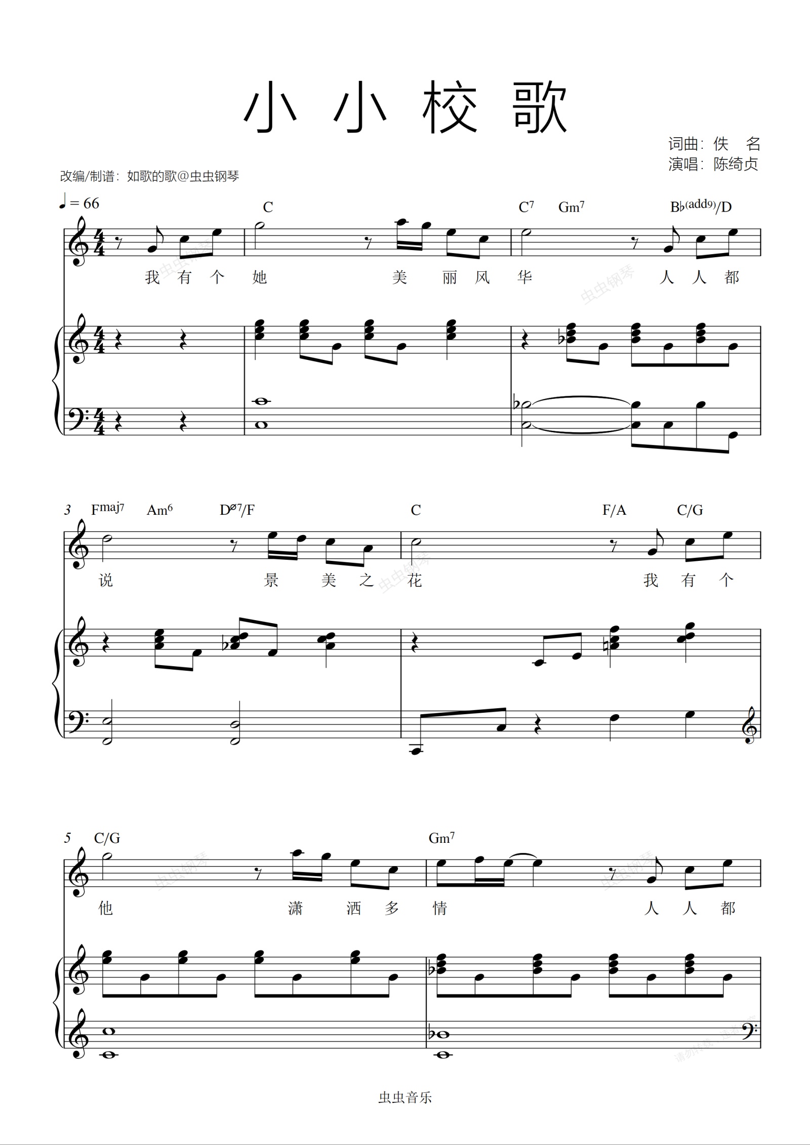 钢琴谱:小小校歌-旋律+钢伴C调好弹唱
