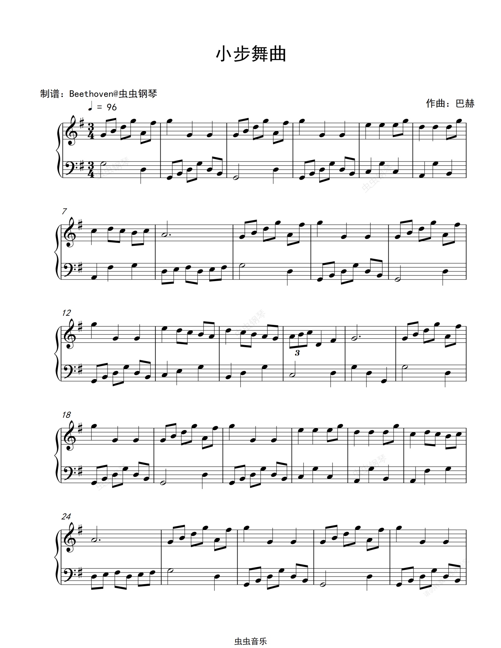 钢琴谱:小步舞曲3-Minuet-巴赫