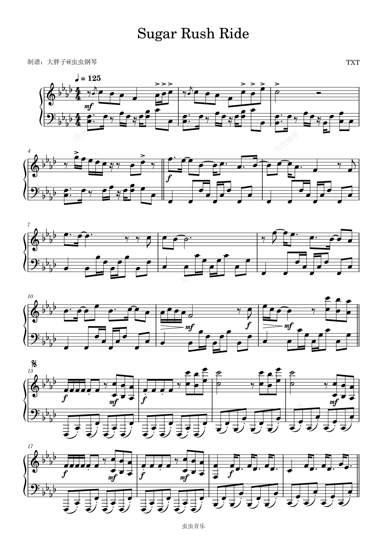 钢琴谱:Sugar Rush Ride - TOMORROW X TOGETHER (투모로우바이투게더)