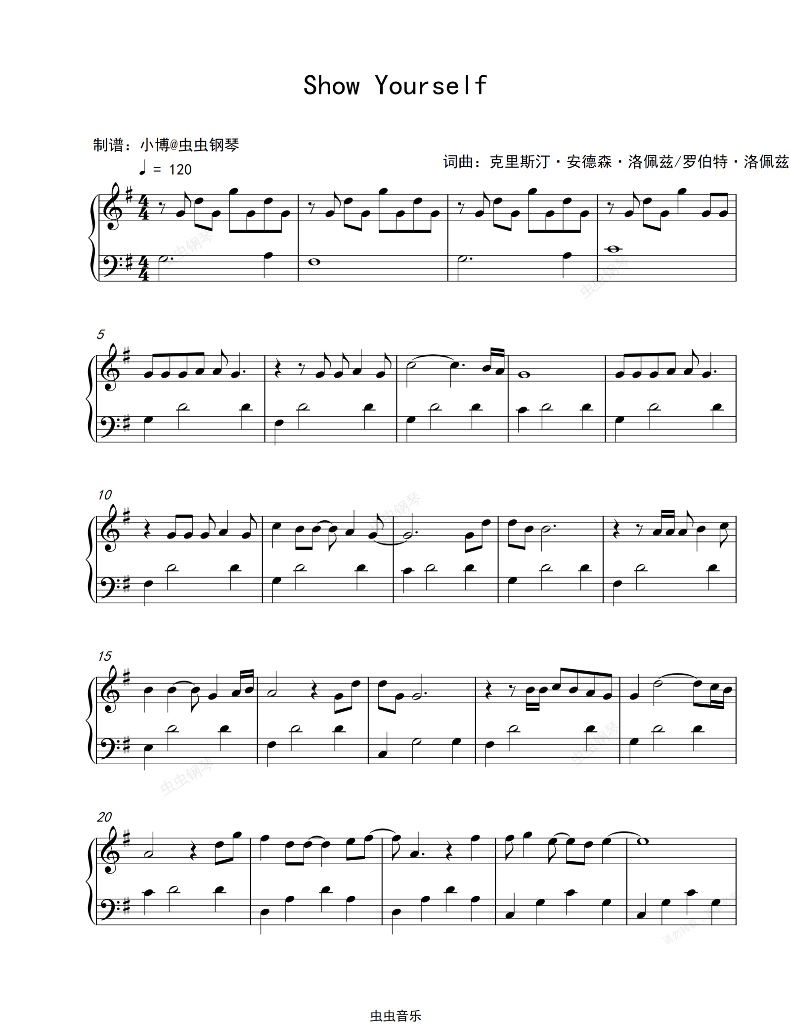 钢琴谱:Show Yourself-简单版-迪士尼-克里斯汀·安德森·洛佩兹/罗伯特·洛佩兹