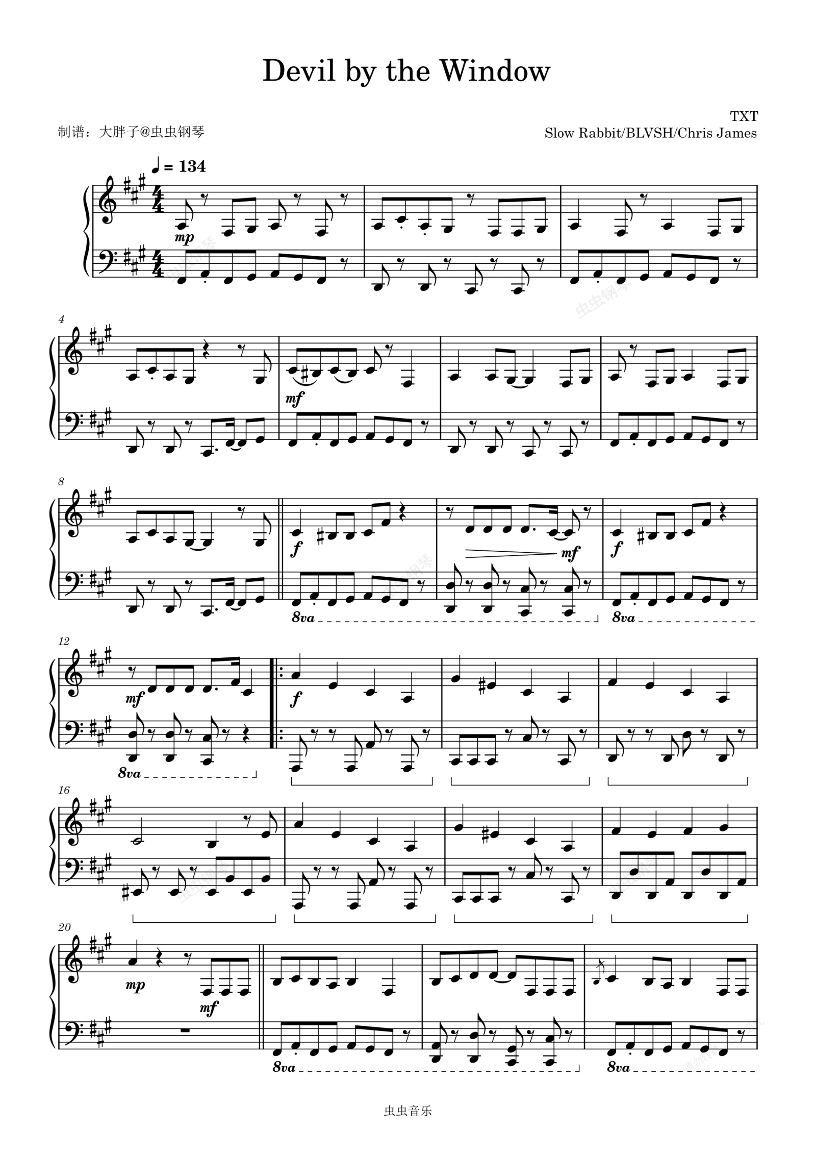 钢琴谱:Devil by the Window - TOMORROW X TOGETHER (투모로우바이투게더)