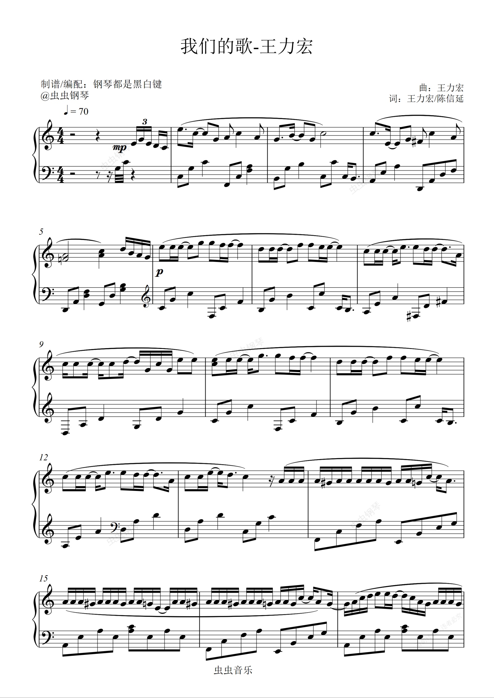 钢琴谱:我们的歌 - 王力宏 【好听易弹钢琴独奏】