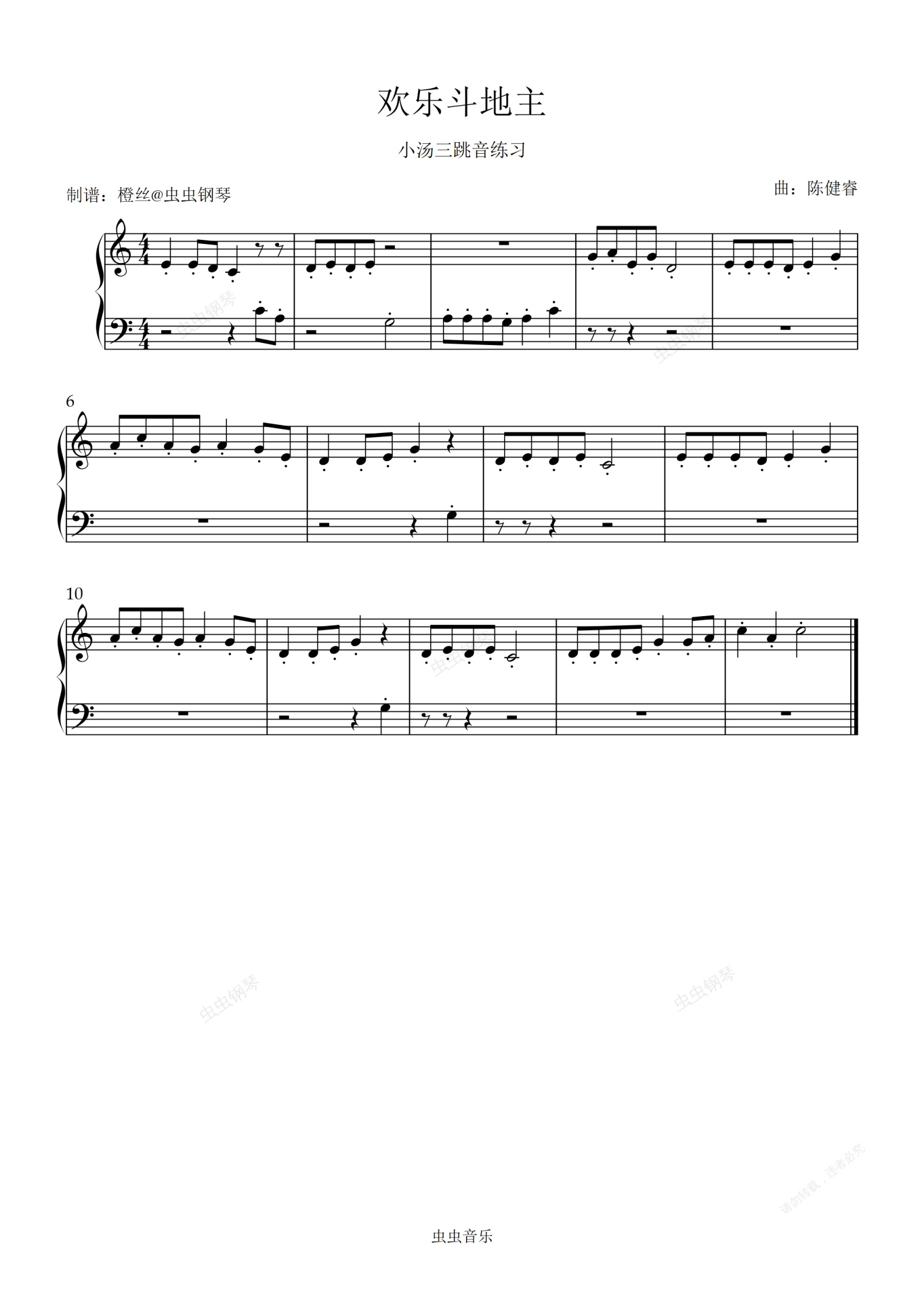 钢琴谱:欢乐斗地主(小汤三跳音练习)