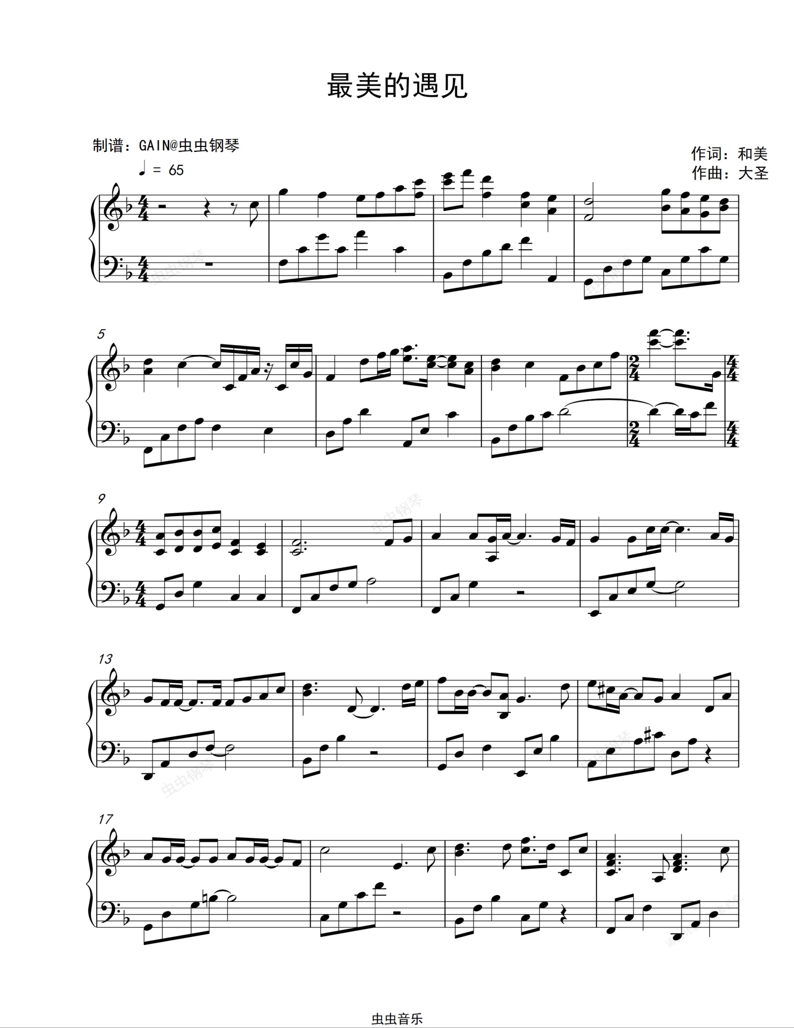 钢琴谱:最美的遇见-凉生我们可不可以不忧伤主题曲-徐佳莹