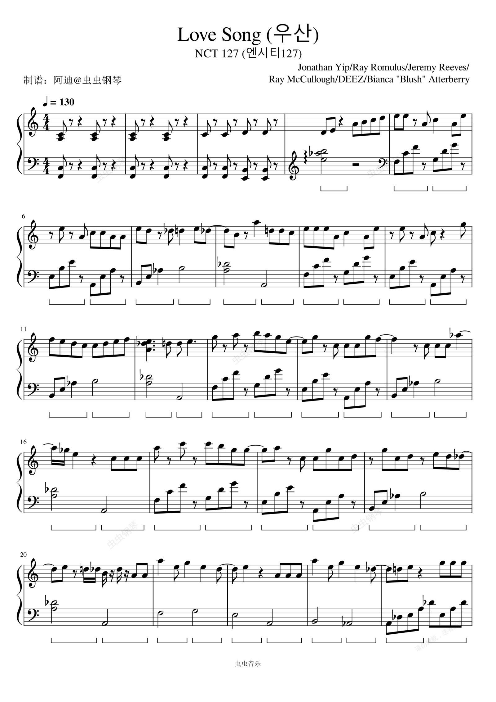 钢琴谱:우산 (Love Song) - NCT 127 (엔시티 127)