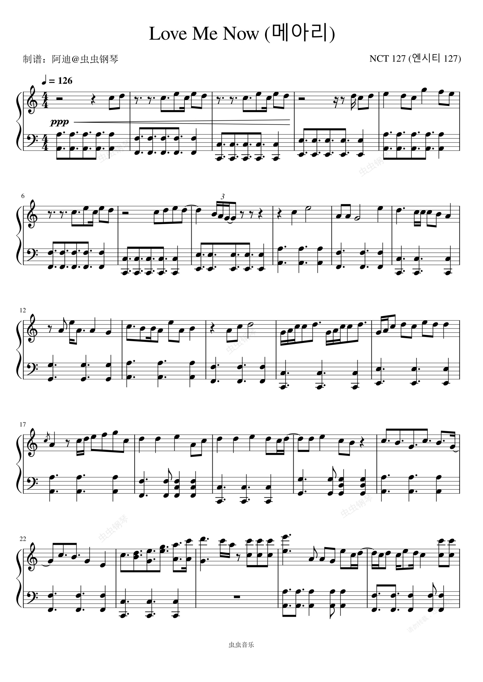钢琴谱:메아리 (Love Me Now) - NCT 127 (엔시티 127)