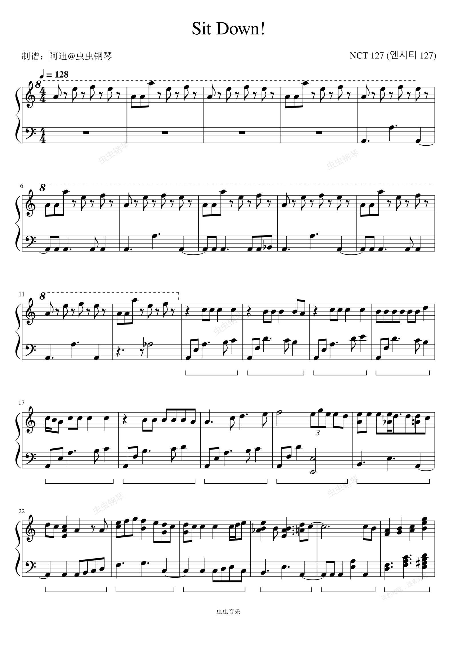 钢琴谱:Sit Down! - NCT 127 (엔시티 127)