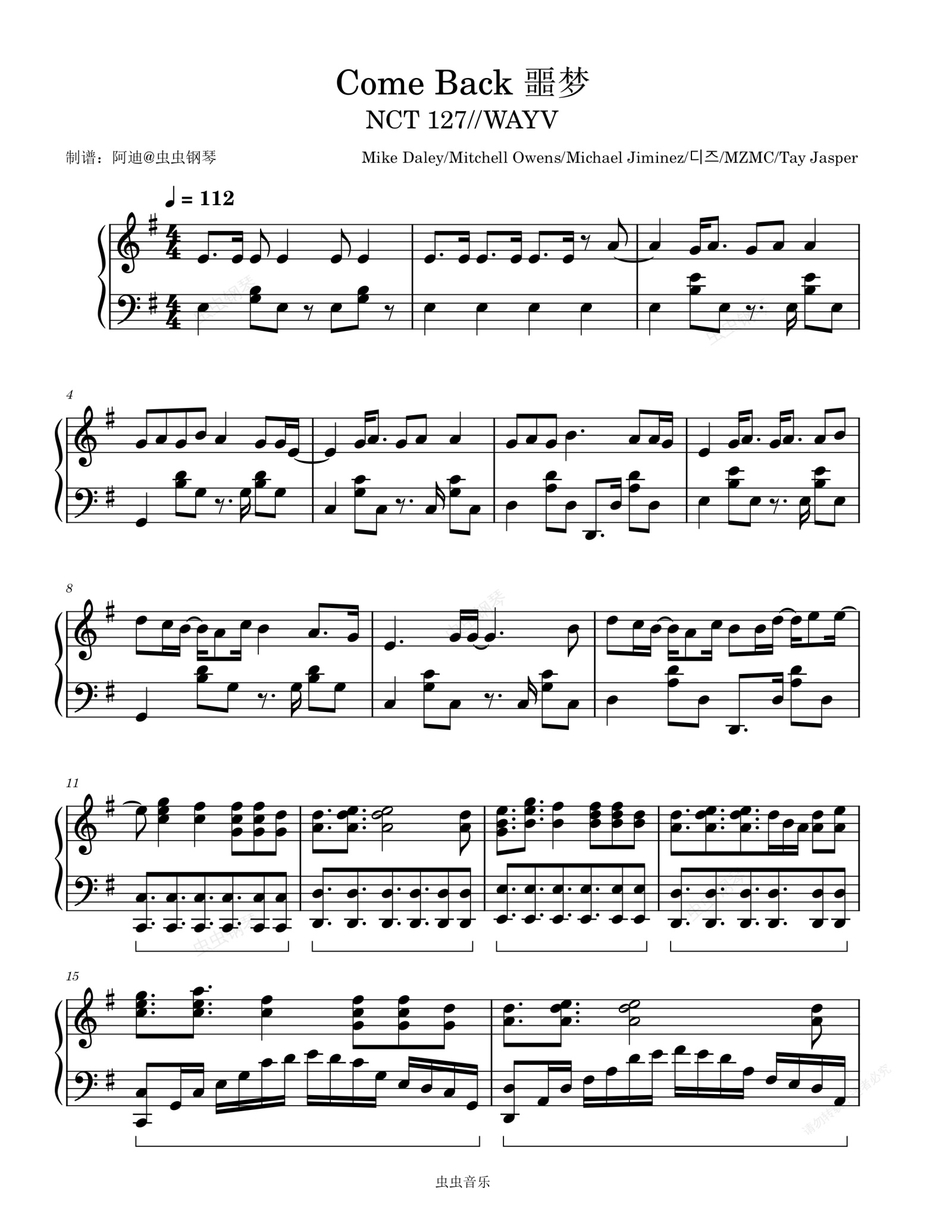 钢琴谱:악몽 (Come Back) - NCT 127 (엔시티 127)