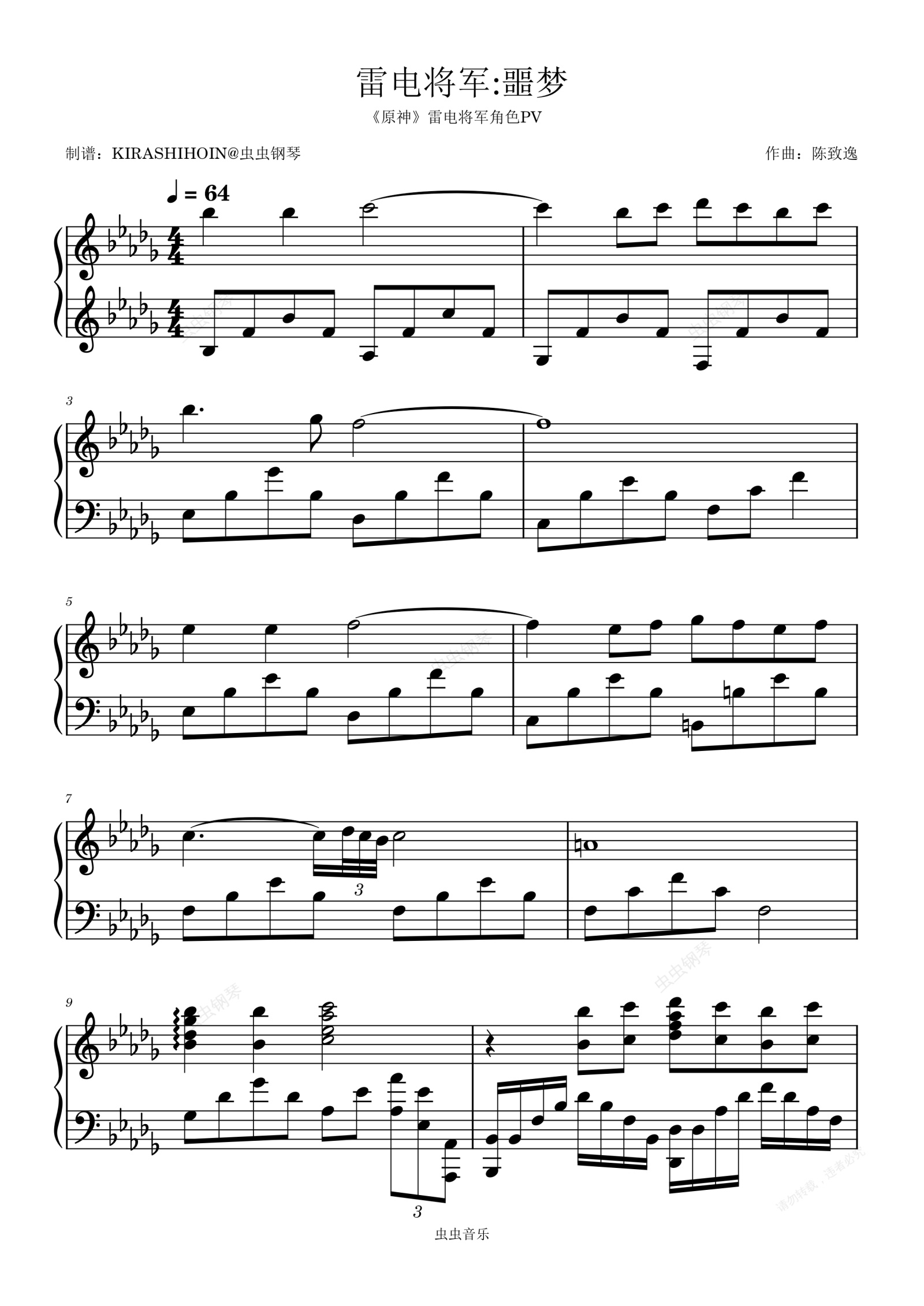 钢琴谱:雷电将军:噩梦(《原神》雷电将军角色PV)- 陈致逸