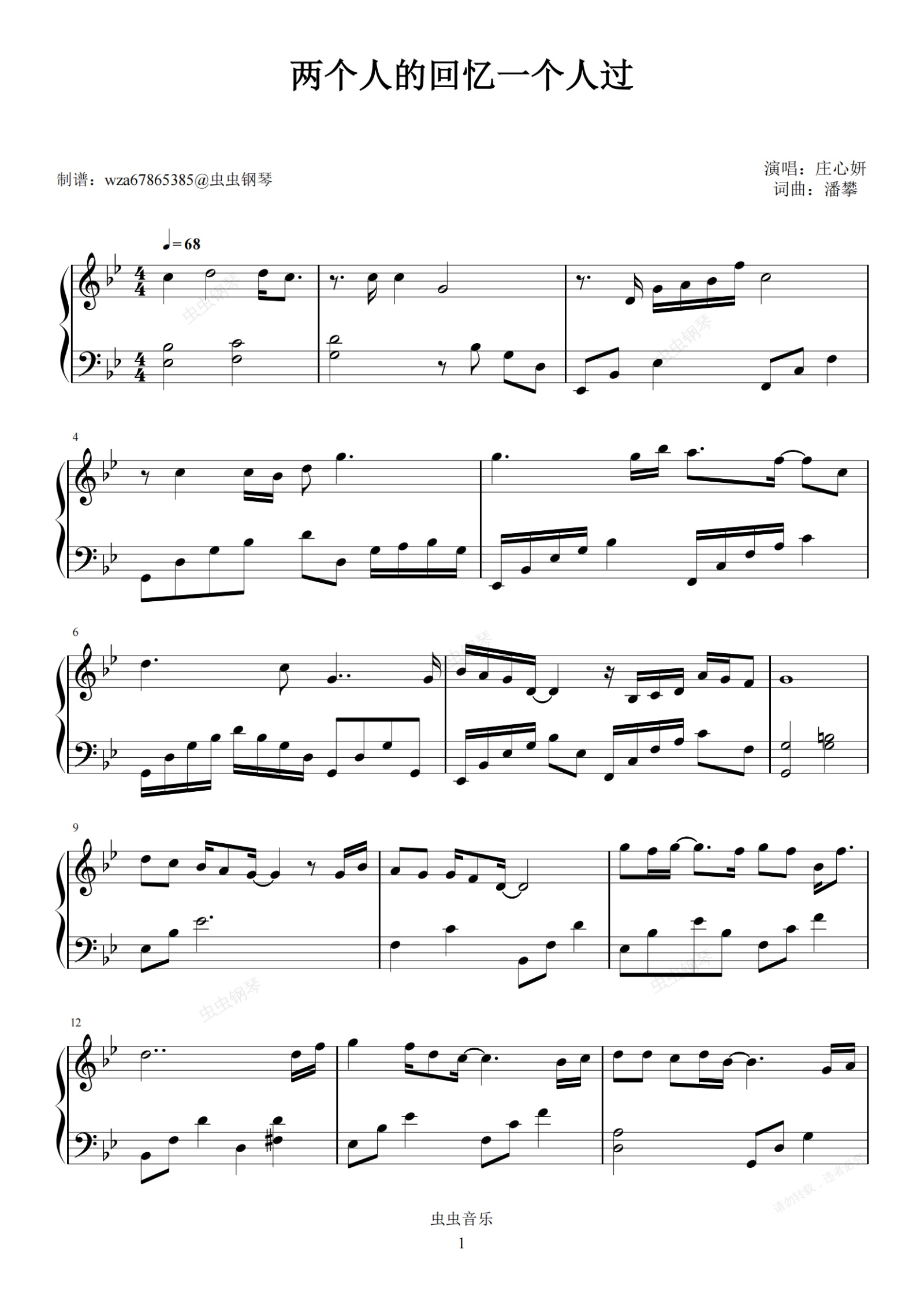 钢琴谱:两个人的回忆一个人过