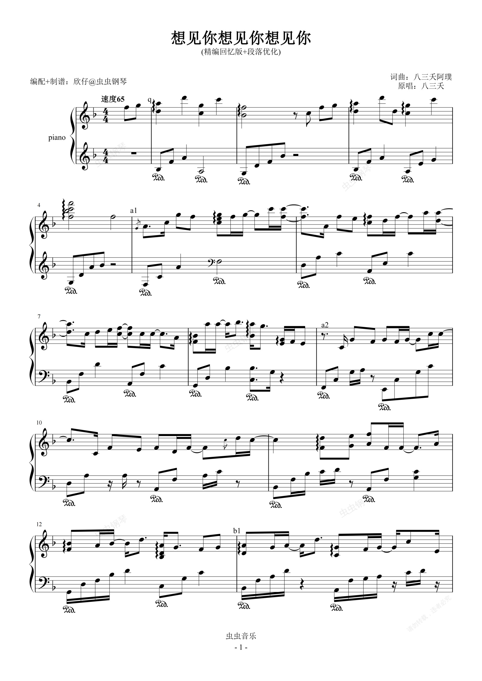 钢琴谱:八三夭-F《想见你想见你想见你》(精编回忆版+段落优化)