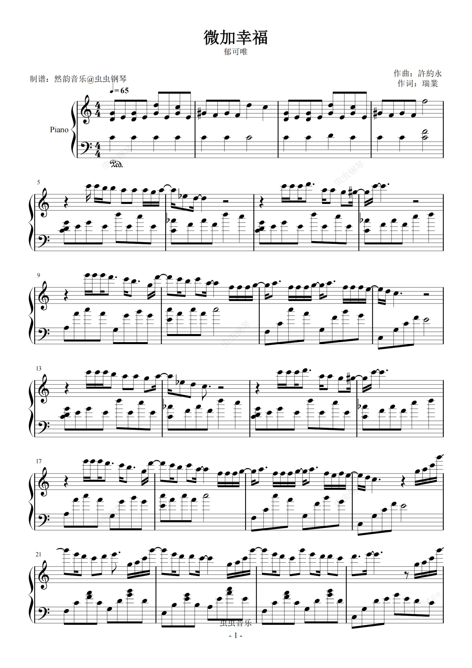 钢琴谱:【C调】微加幸福-郁可唯 钢琴唯美还原