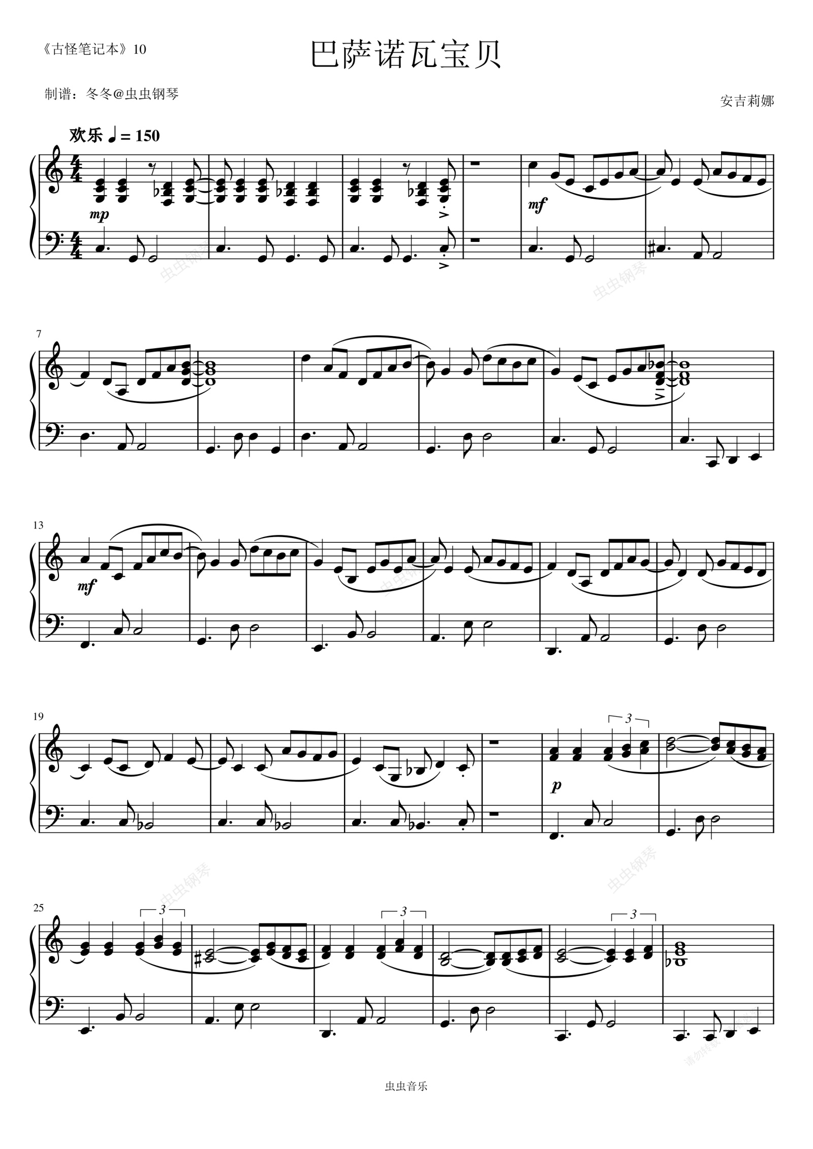 钢琴谱:巴萨诺瓦宝贝