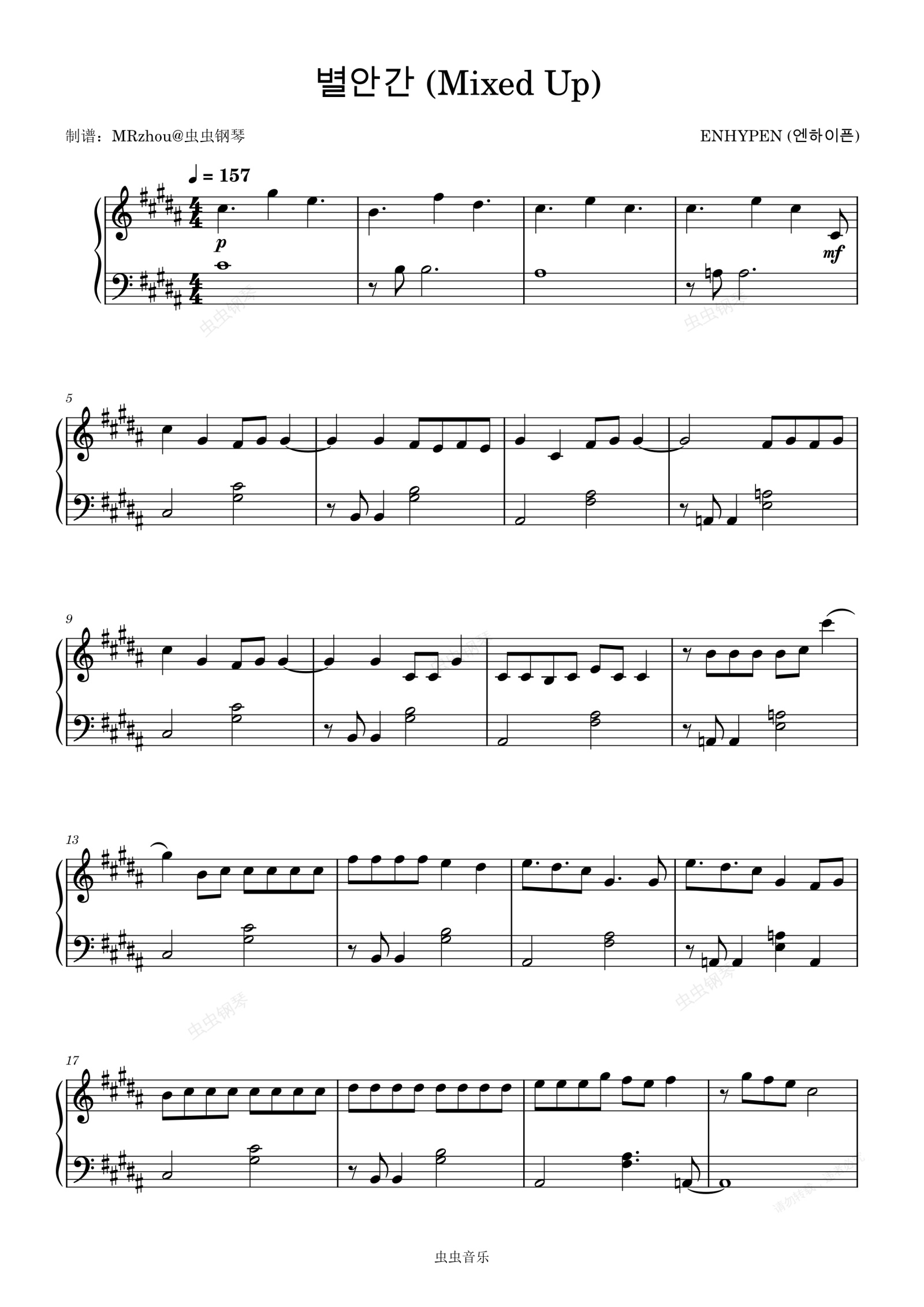 钢琴谱:별안간 (Mixed Up) - ENHYPEN (엔하이픈)