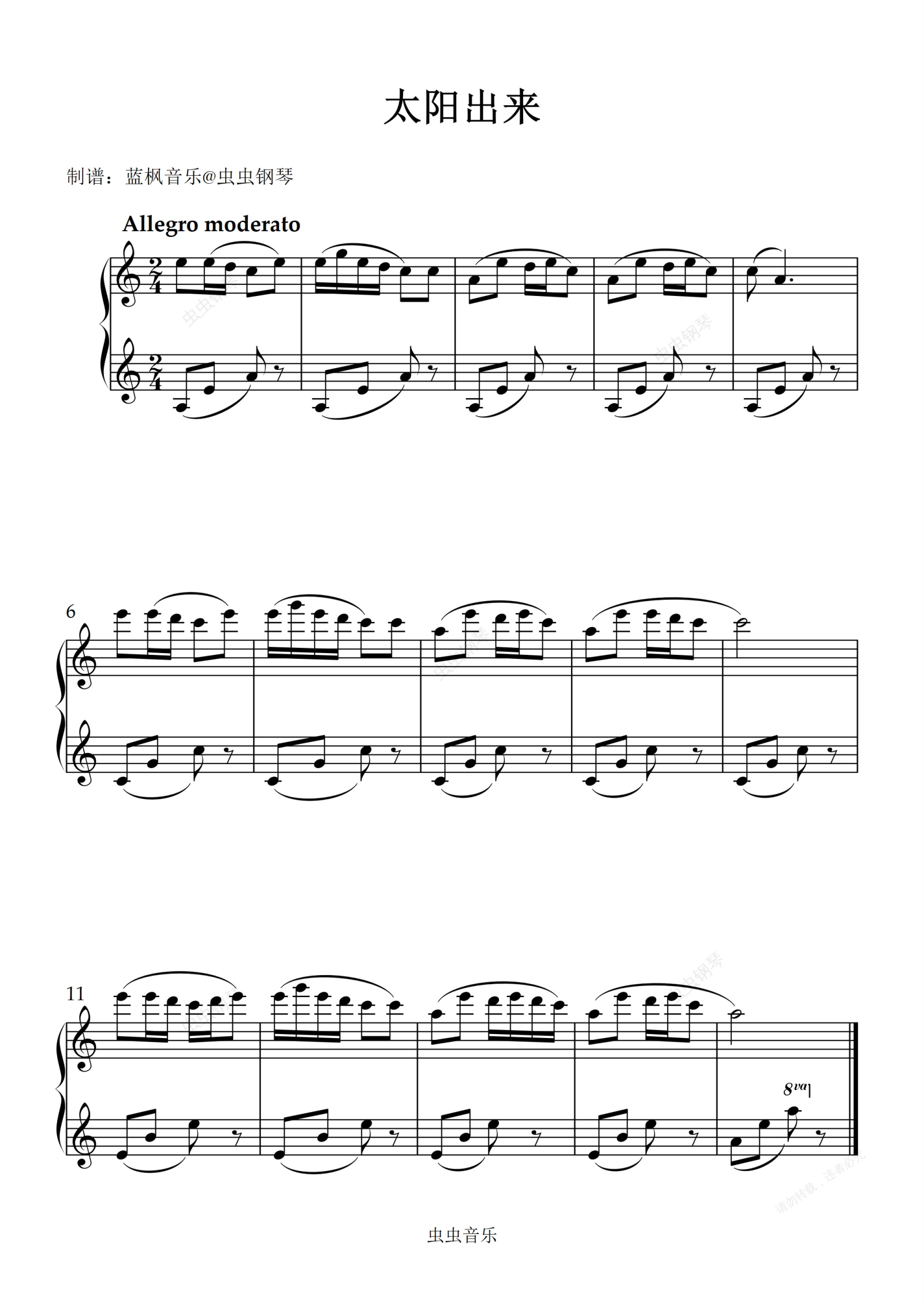 钢琴谱:太阳出来