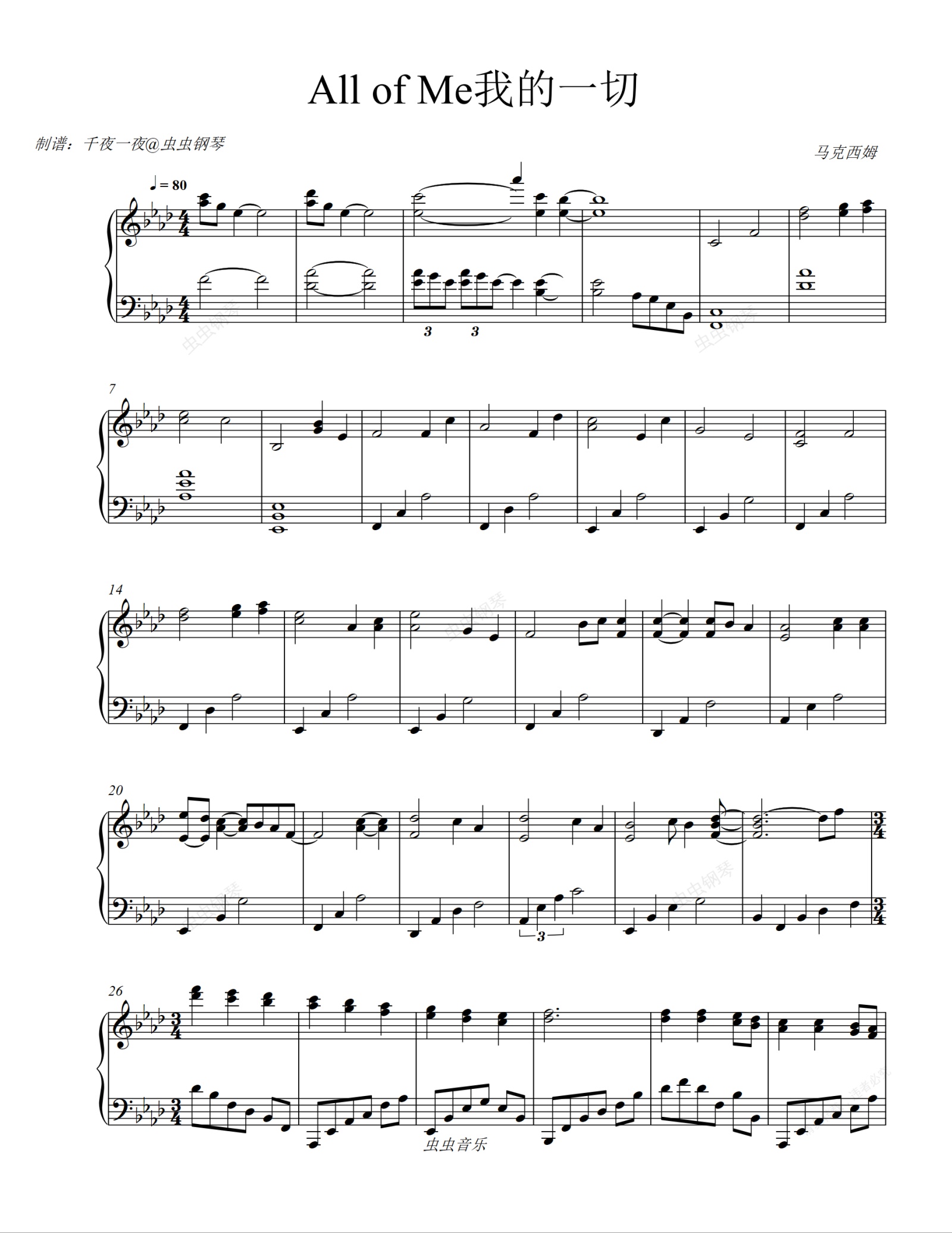 钢琴谱:马克西姆Maksim- 《我的一切》All of Me
