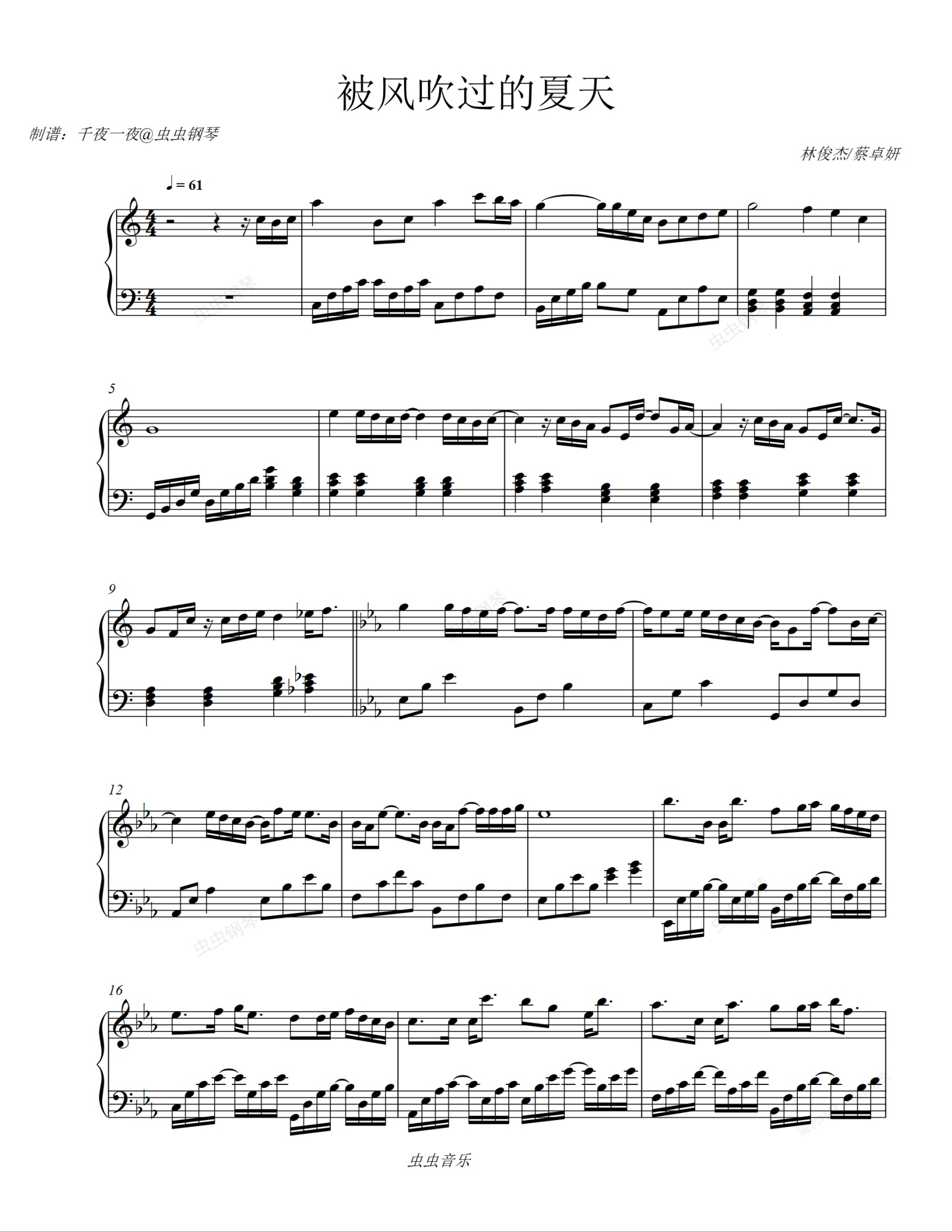 钢琴谱:林俊杰&金莎 - 被风吹过的夏天 MV