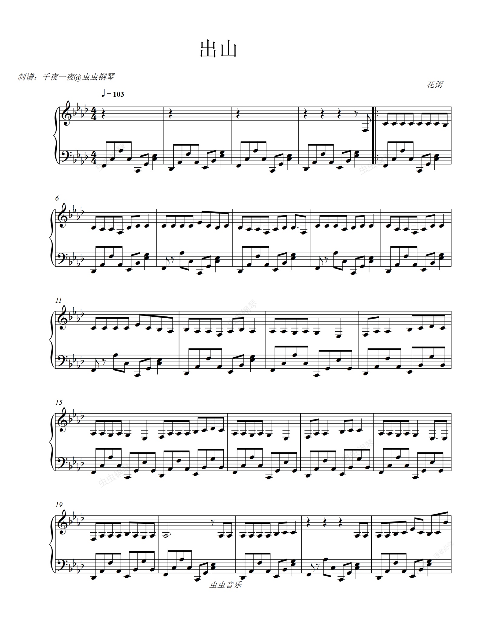 钢琴谱:【花粥】出山,唯美古风