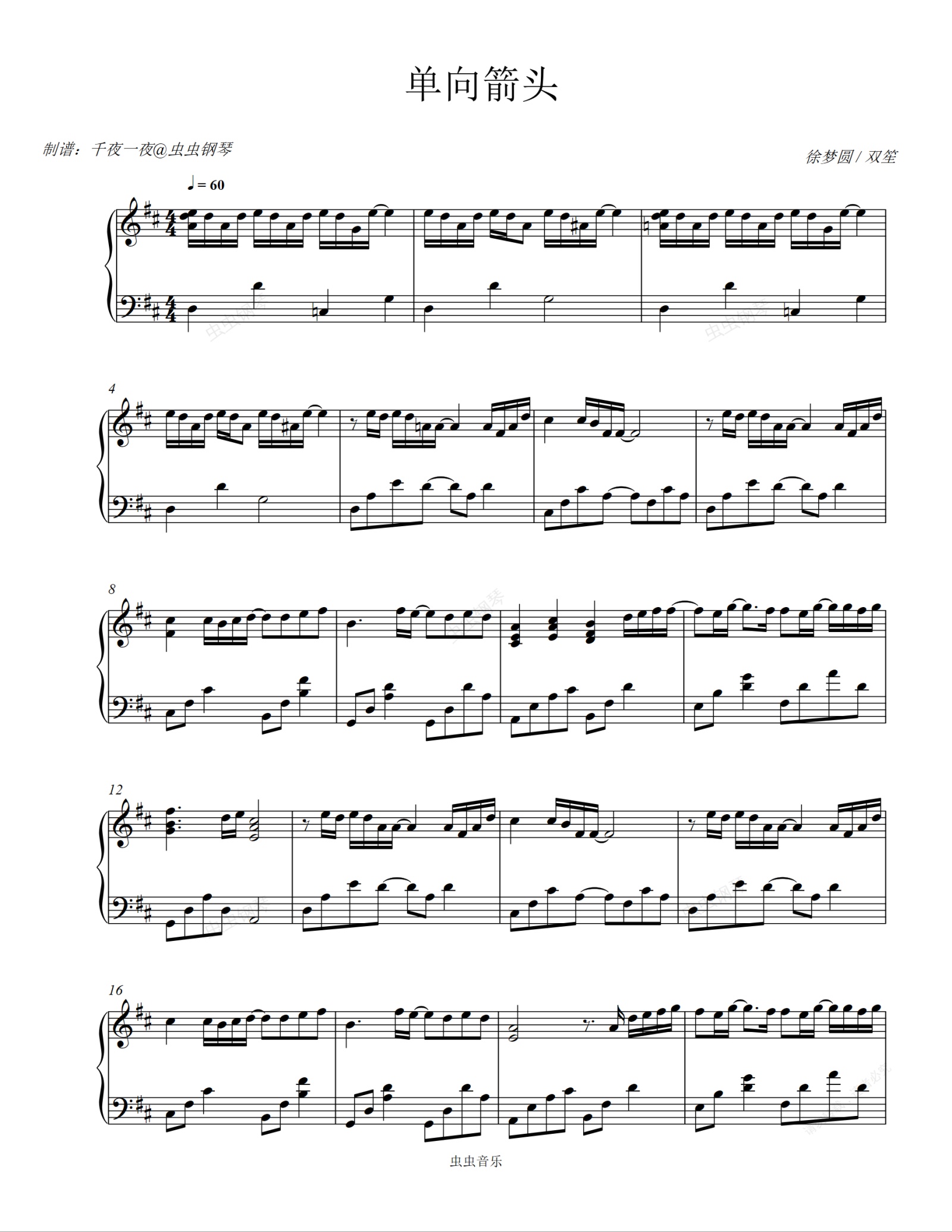钢琴谱:《单向箭头》,喜欢是对她的单向箭头!