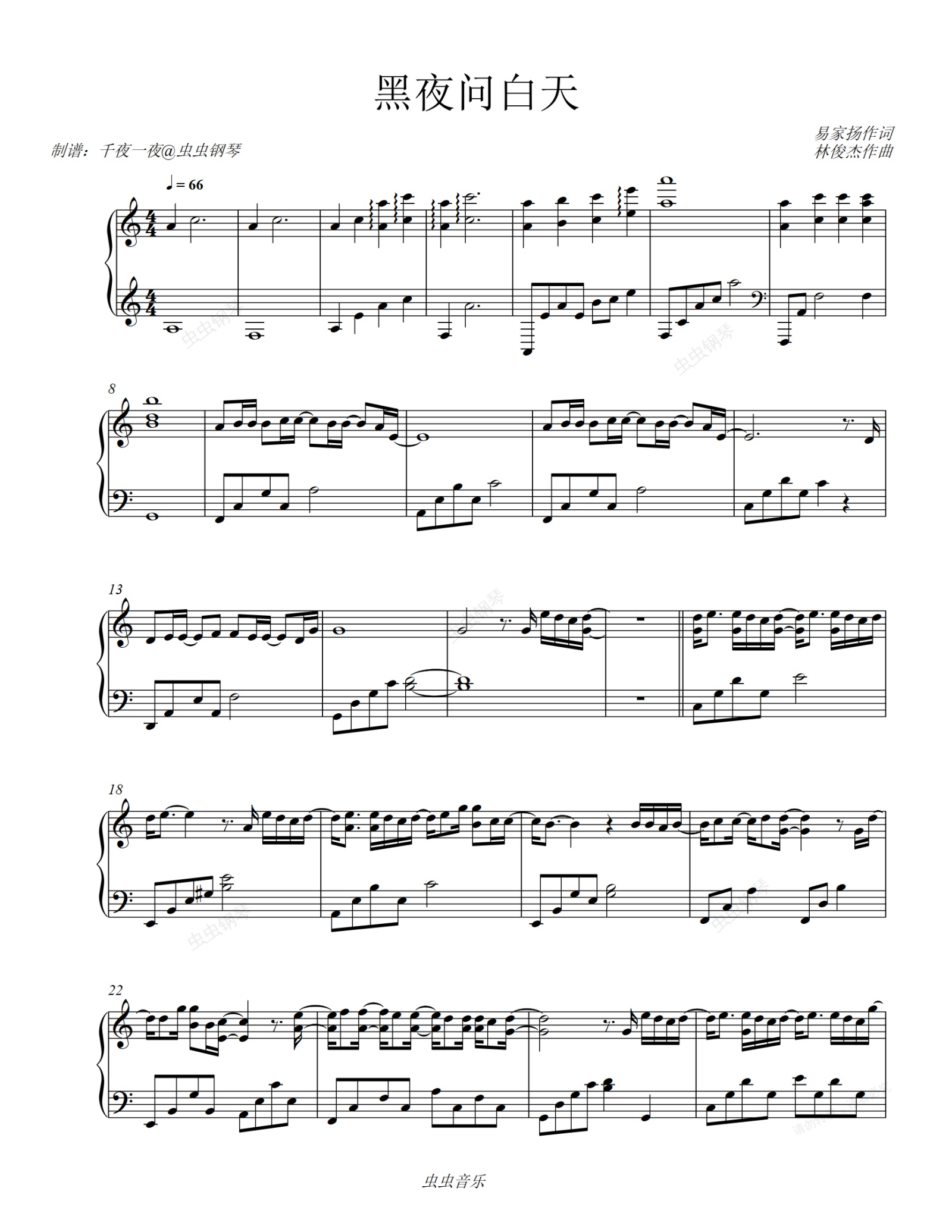 钢琴谱:林俊杰《黑夜问白天》丨超好听啊啊啊