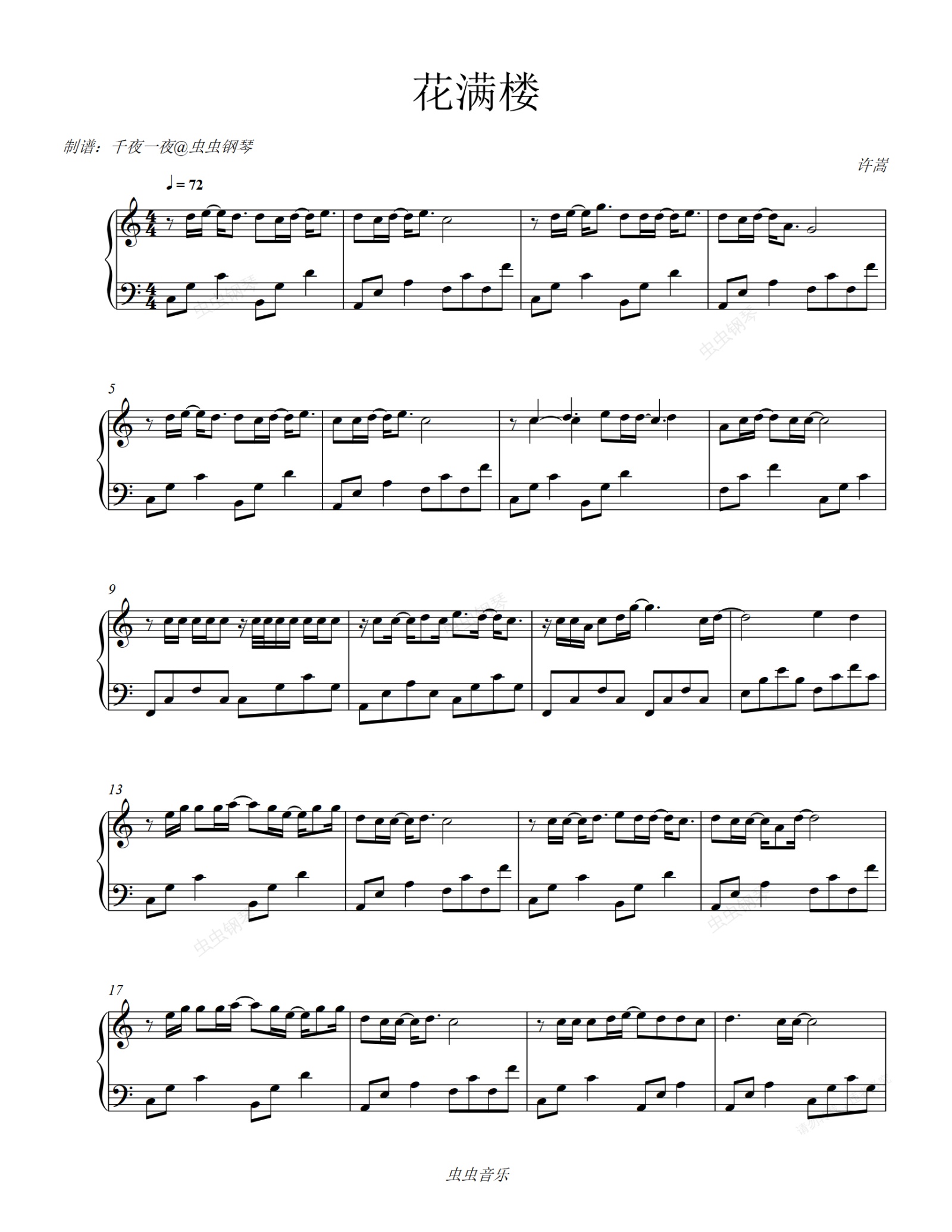 钢琴谱:【中国风】许嵩《花满楼》中国风式歌词中的靓词佳品。
