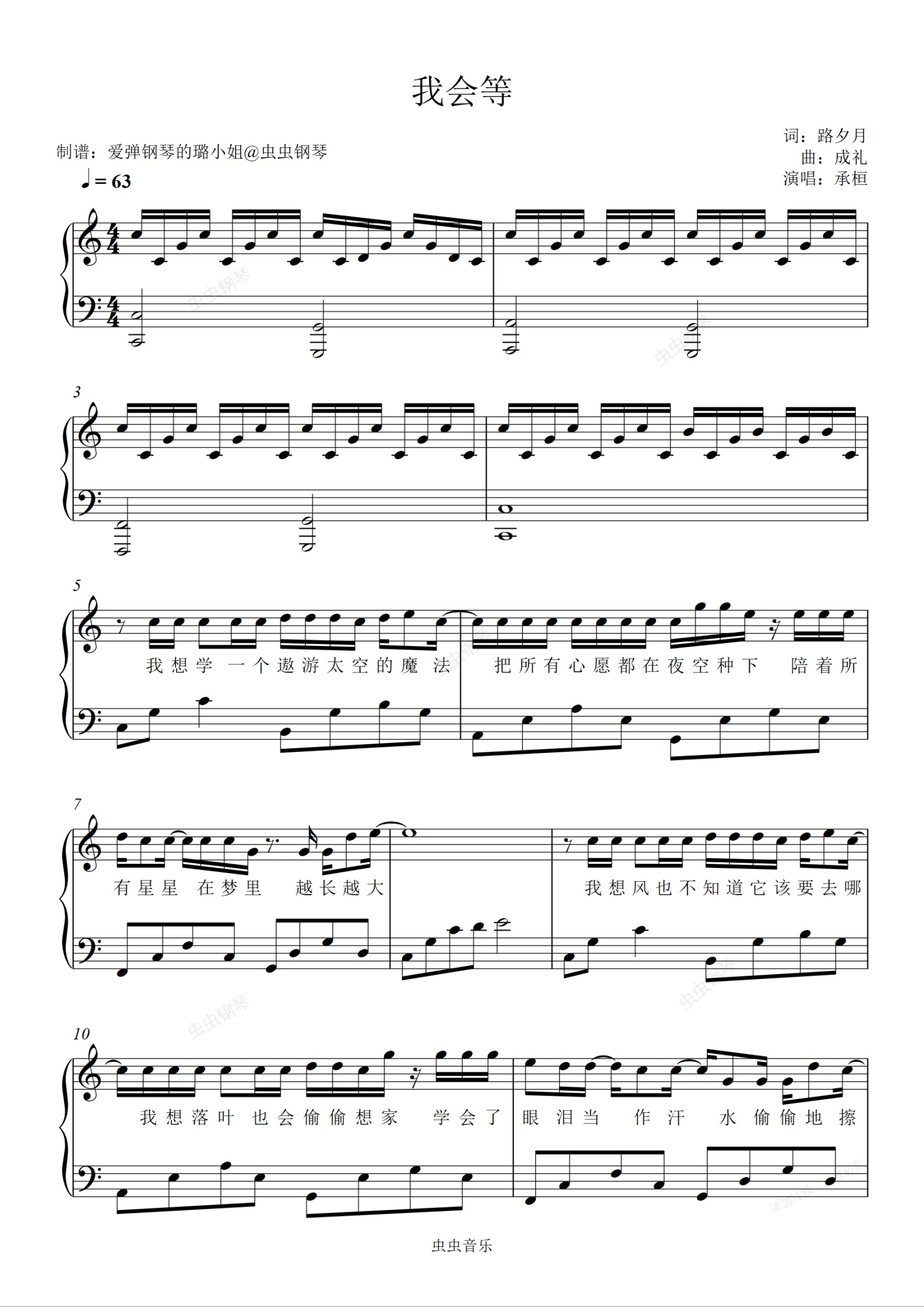 钢琴谱:我会等 - 抖音热歌 - C调简单版 - 附歌词