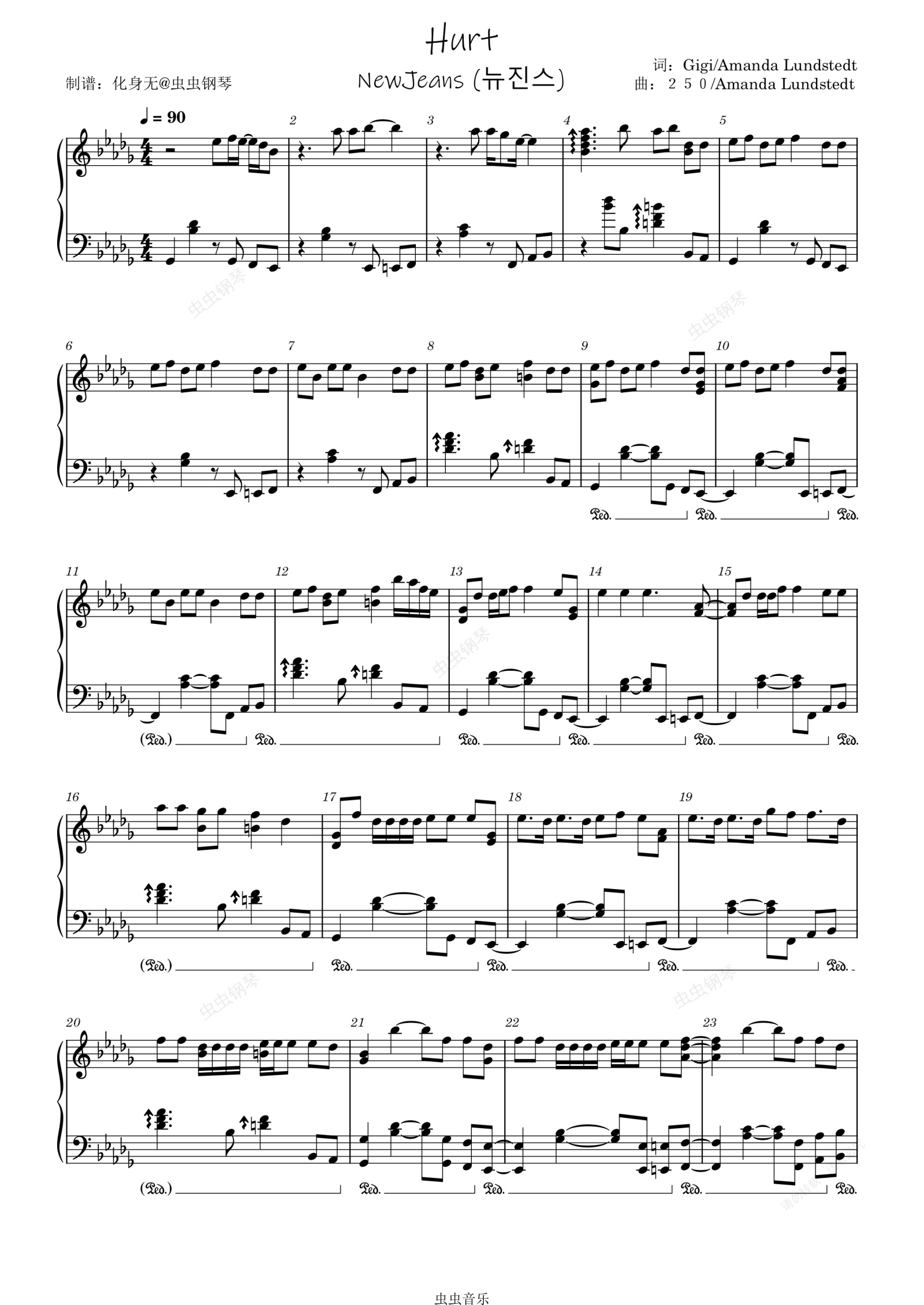 钢琴谱:Hurt 原调独奏版