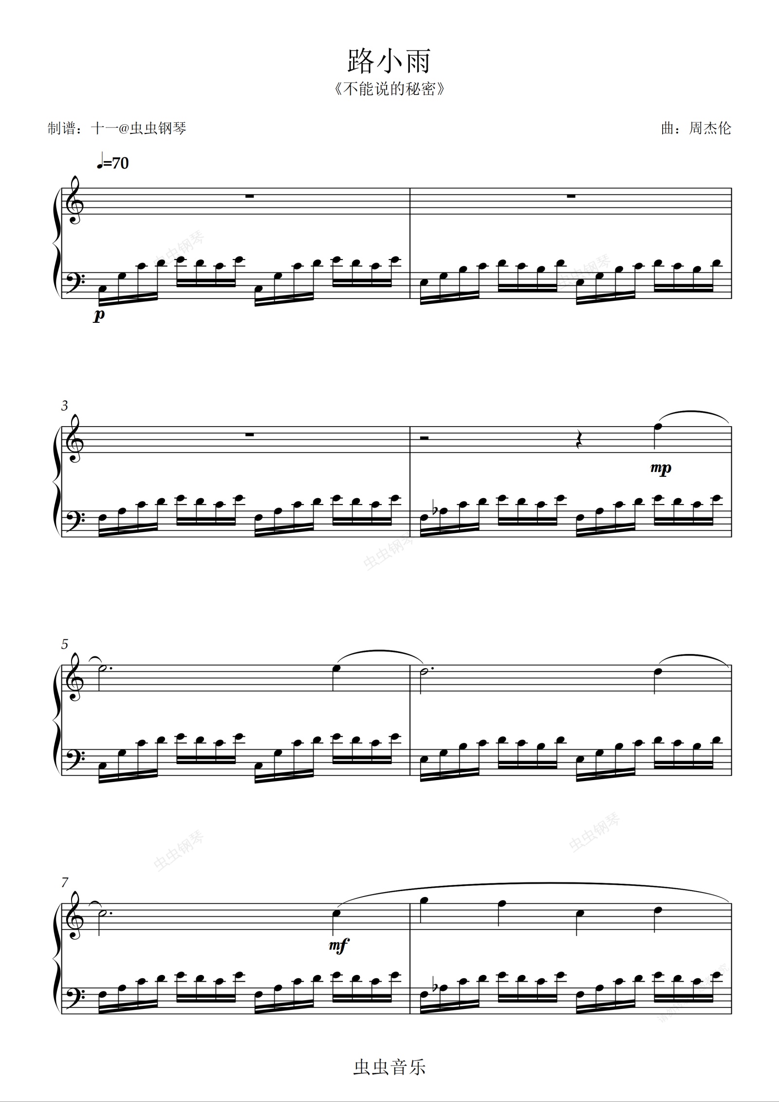 钢琴谱:《路小雨》-不能说的秘密 高度还原