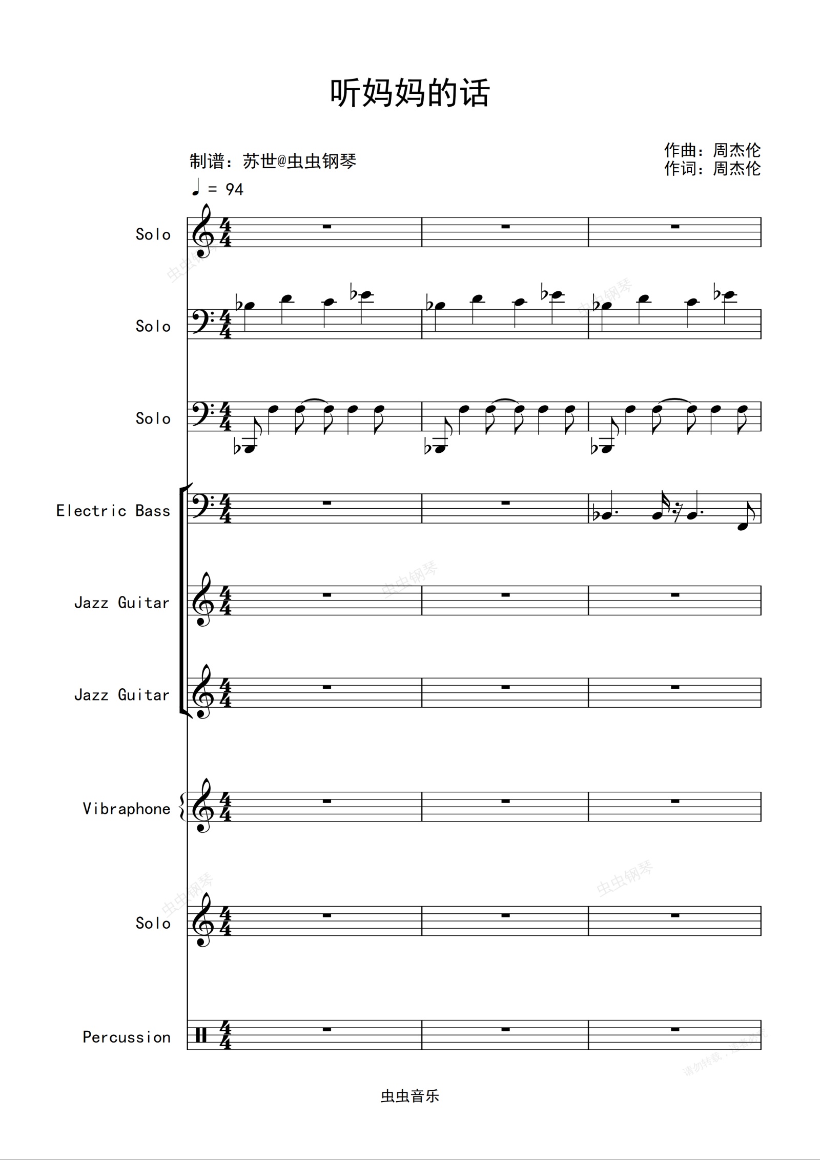 钢琴谱:听妈妈的话——原版伴奏带鼓点