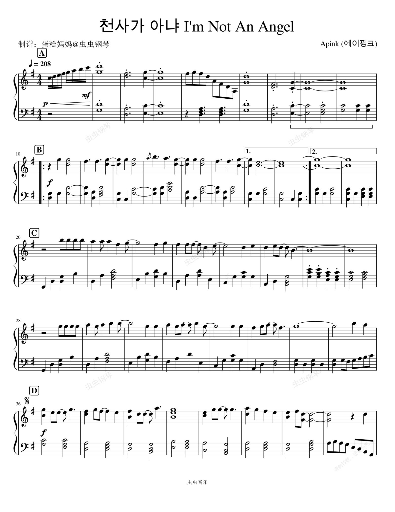 钢琴谱:천사가 아냐 I'm Not An Angel - Apink (에이핑크)