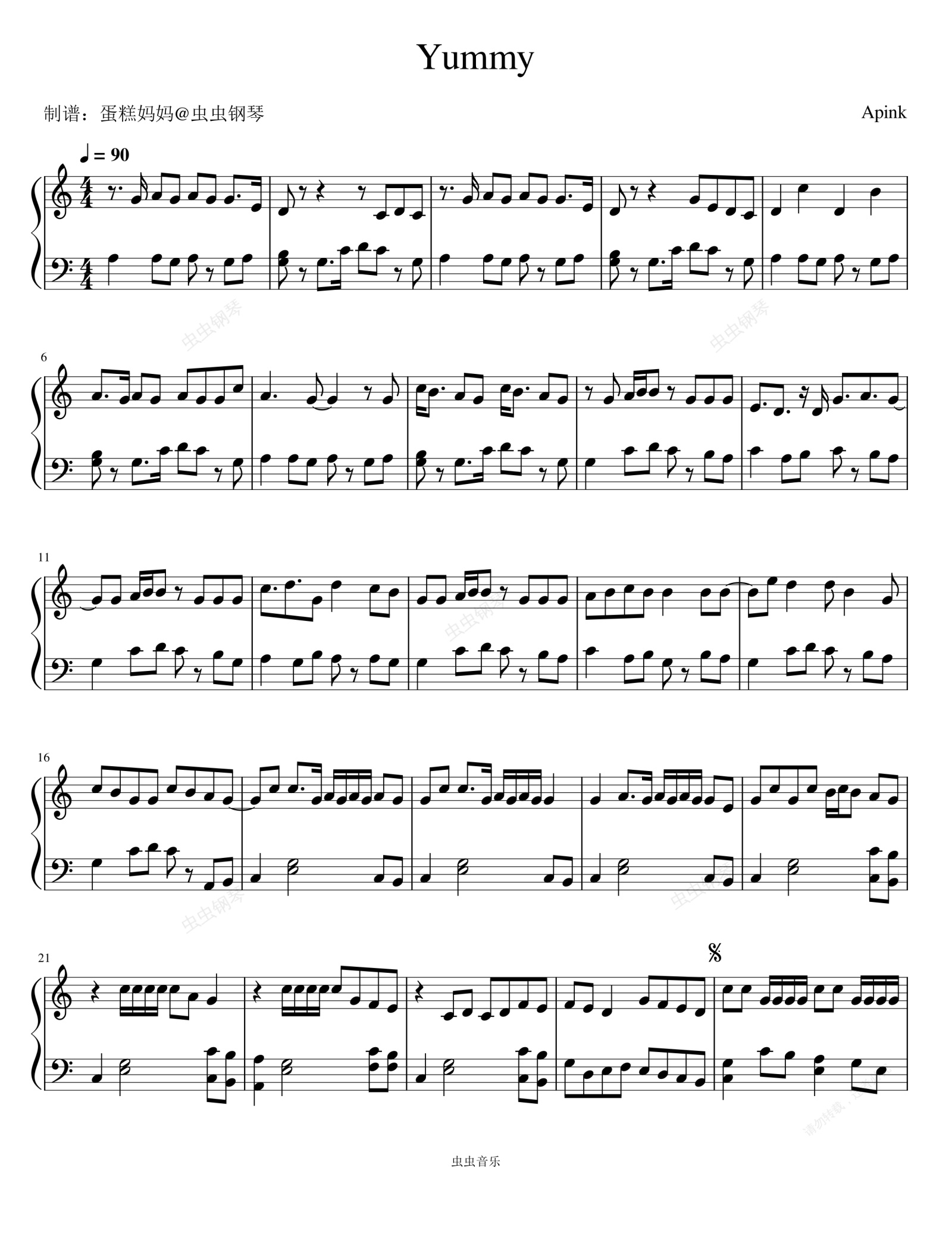 钢琴谱:Yummy - Apink