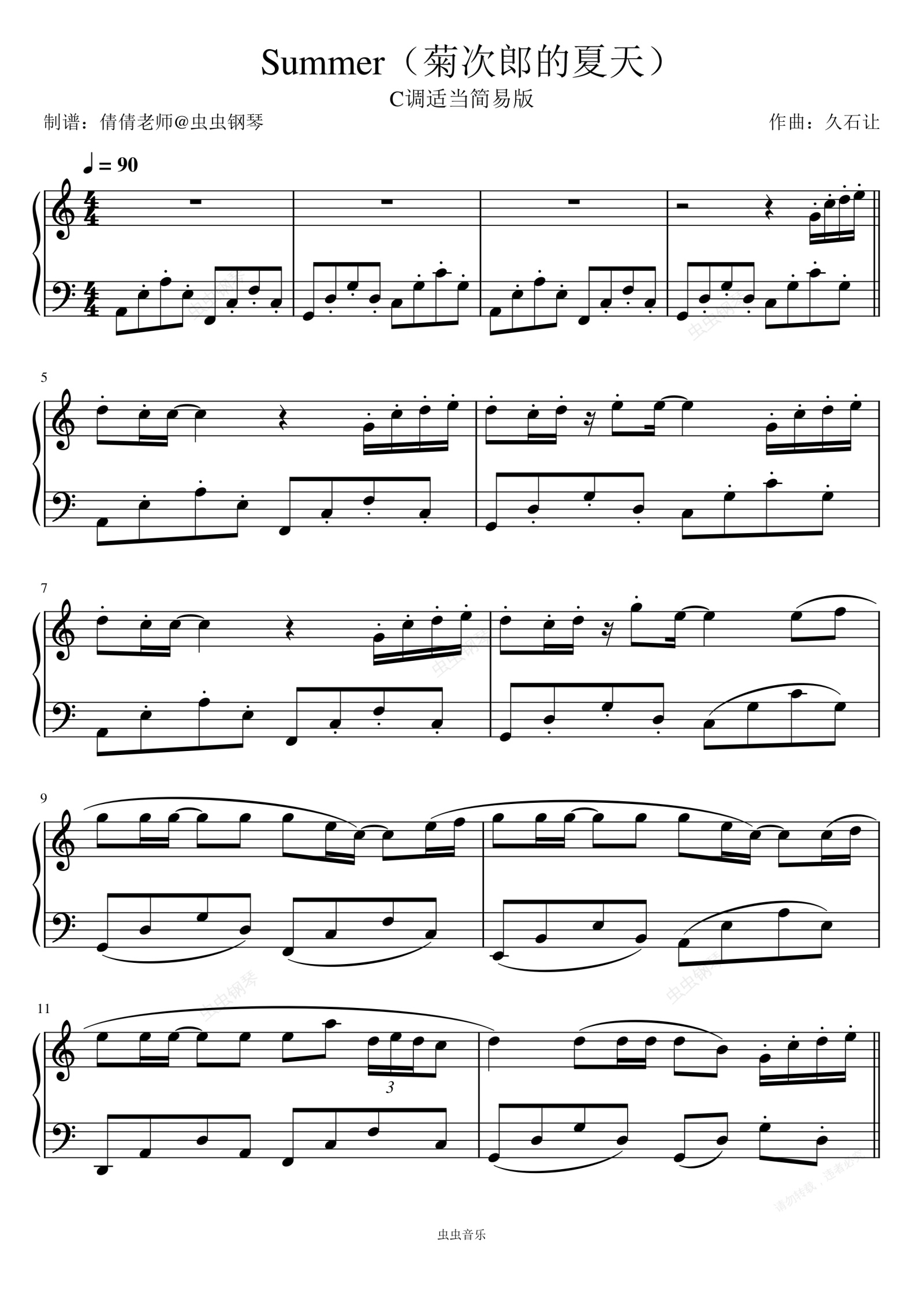 钢琴谱:summer(菊次郎的夏天)-c调适当简易版-久石让