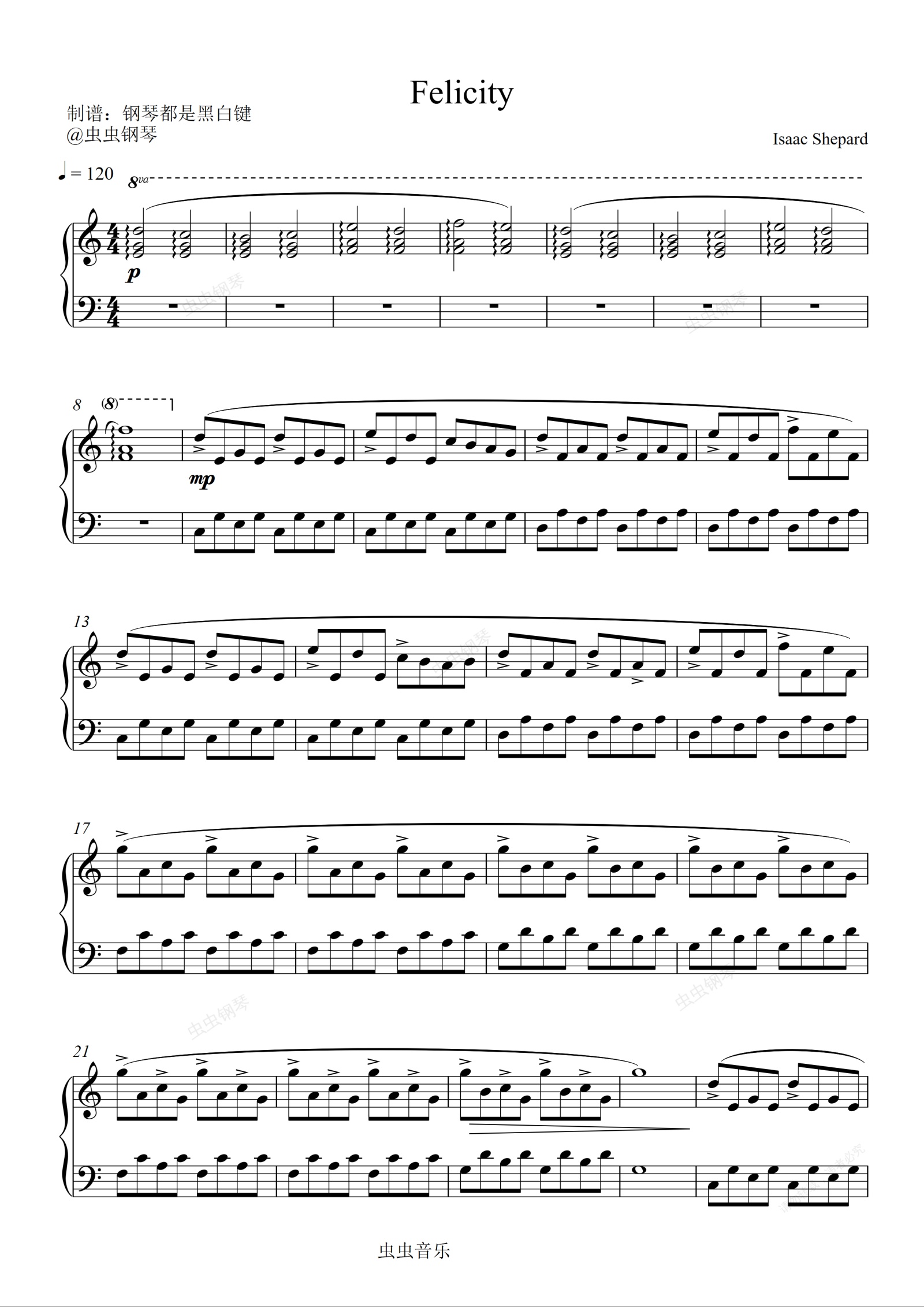 钢琴谱:《Felicity》琴谱|Isaac Shepard 治愈幸福感纯音