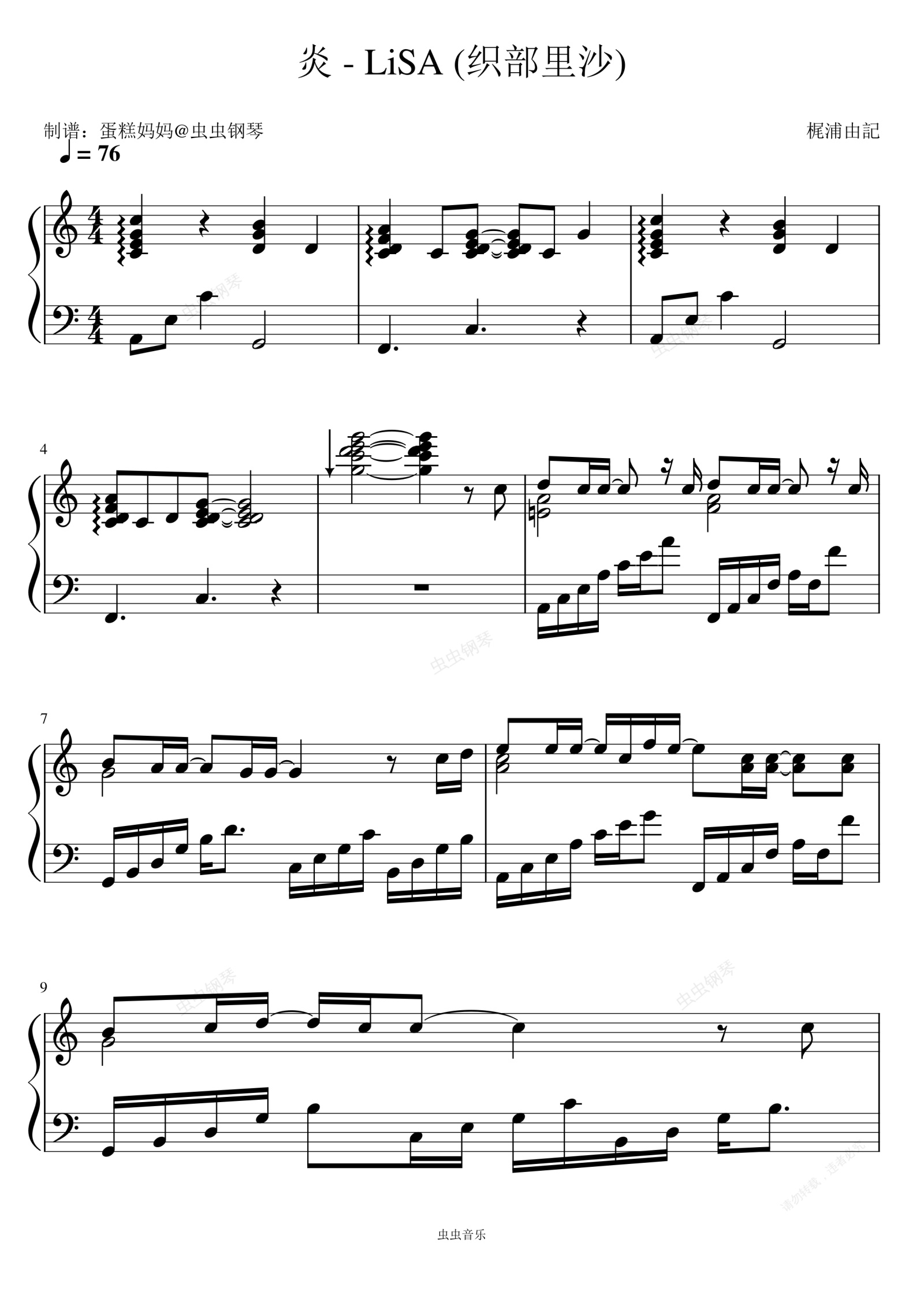 钢琴谱:炎 - LiSA (织部里沙)
