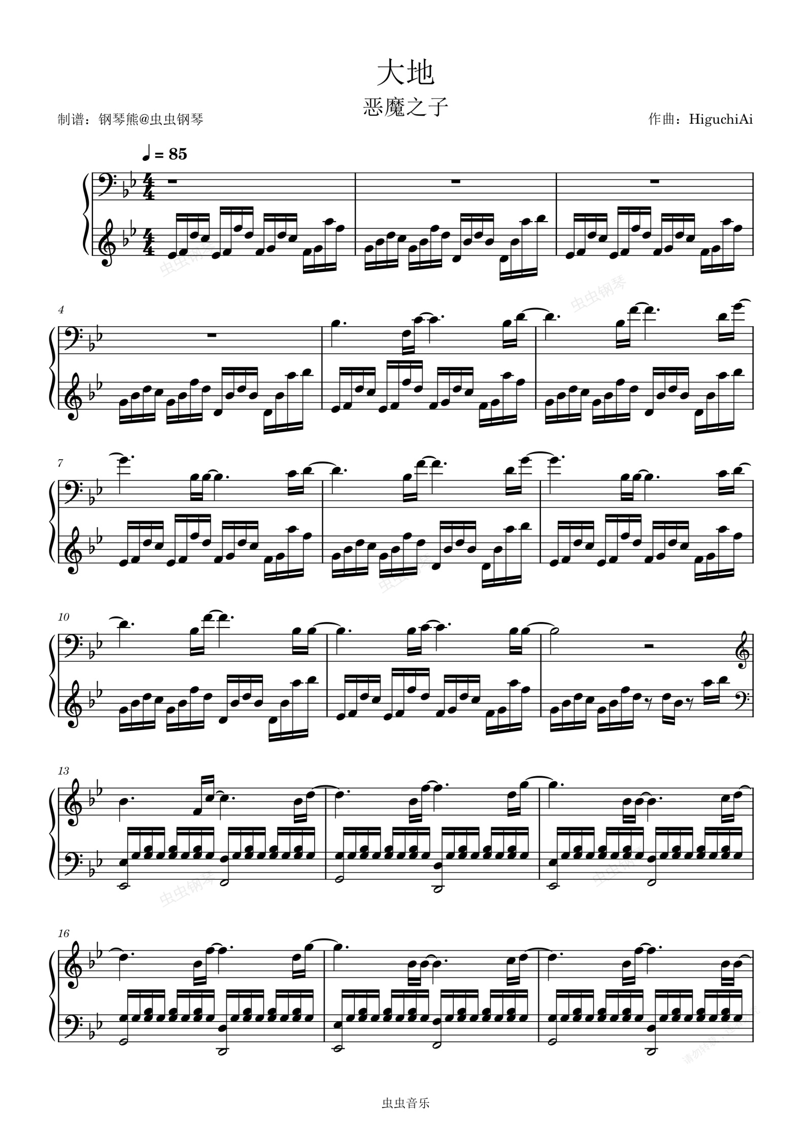 钢琴谱:大地 恶魔之子
