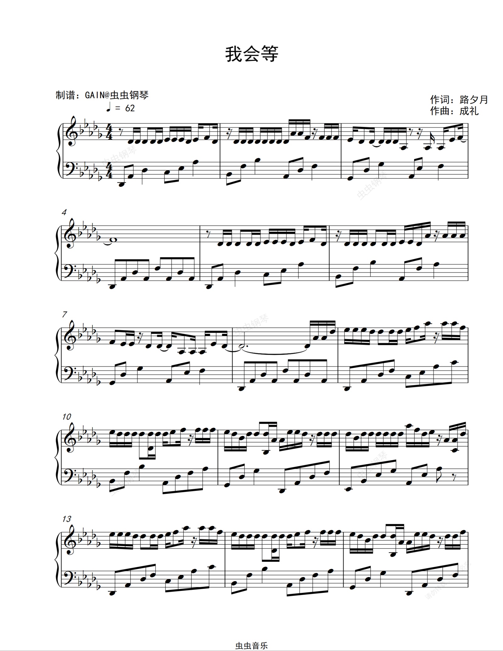 钢琴谱:我会等-简单版-我会等枯树生出芽 开出新的花-承桓