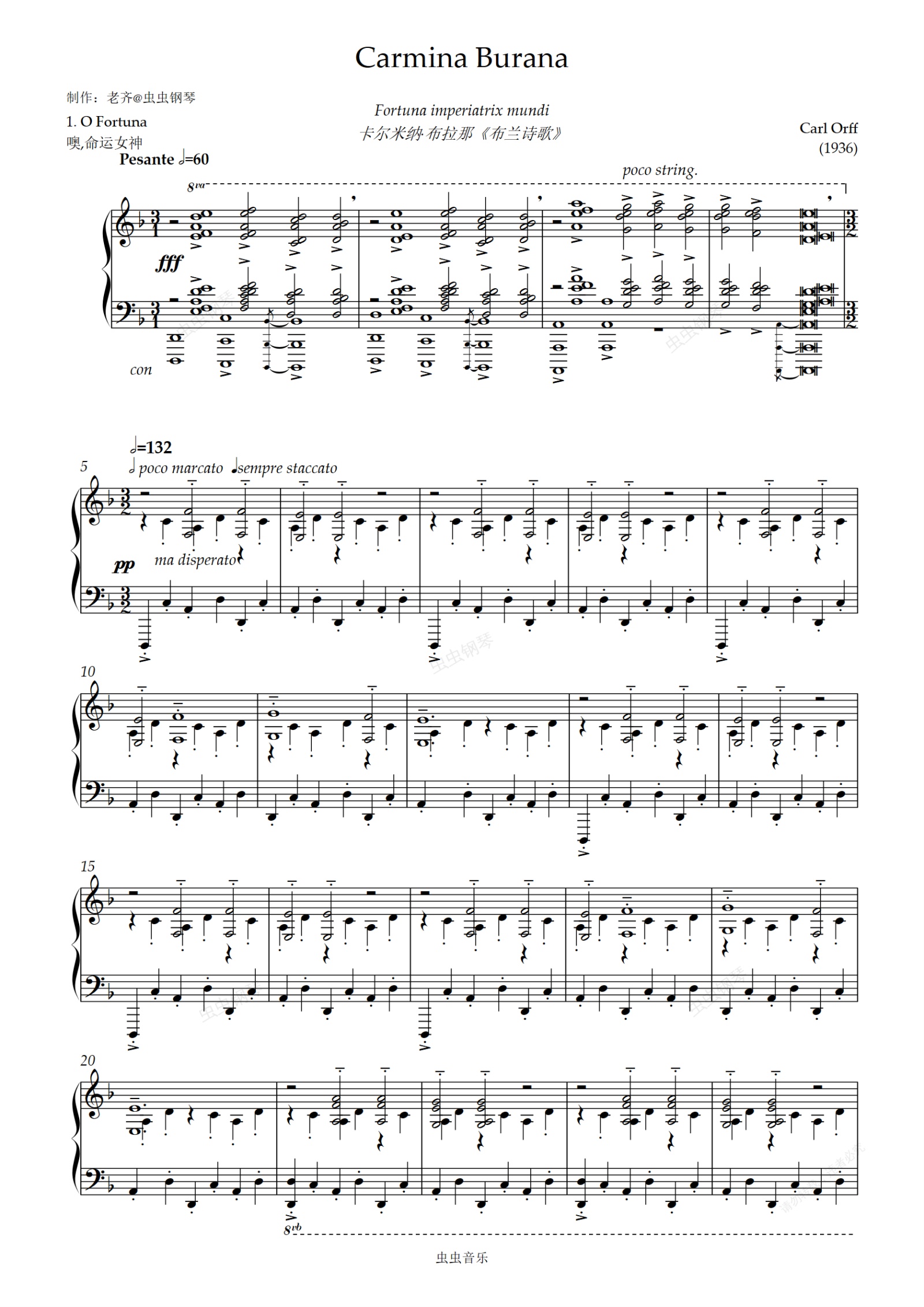 钢琴谱:【布兰诗歌】1.噢,命运女神 O Fortuna