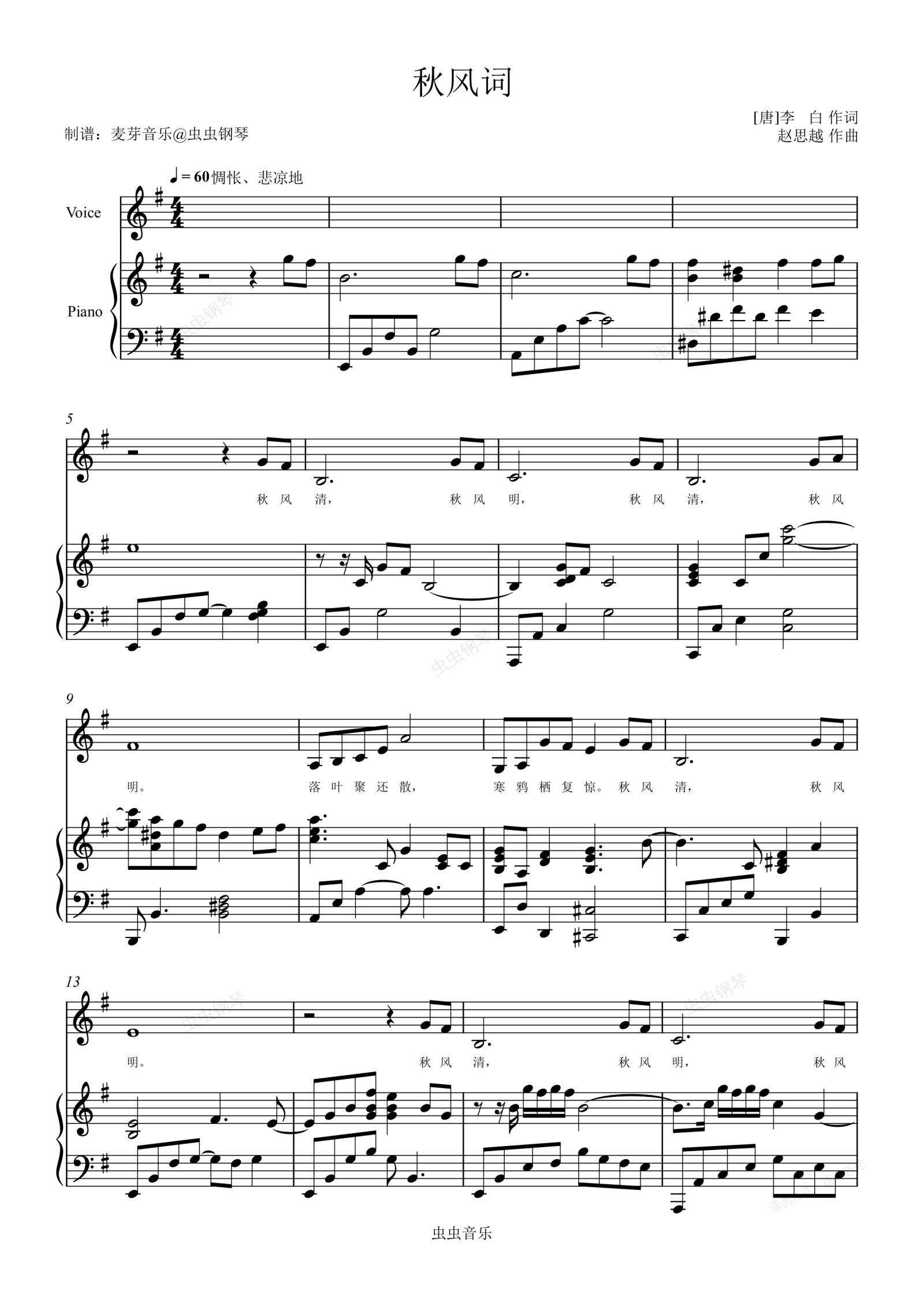 钢琴谱:秋风词G调弹唱