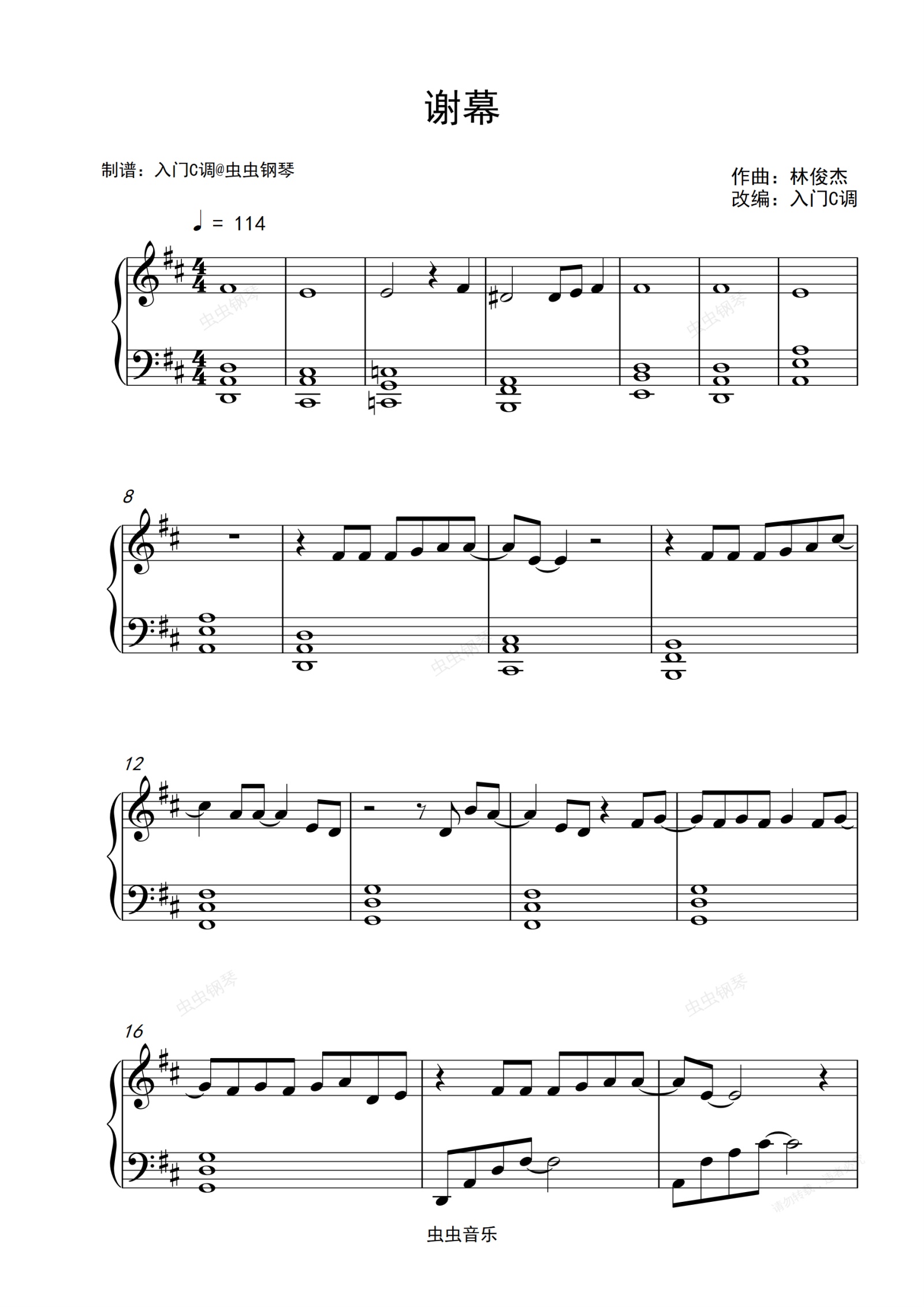 钢琴谱:林俊杰《谢幕》入门原调抒情版