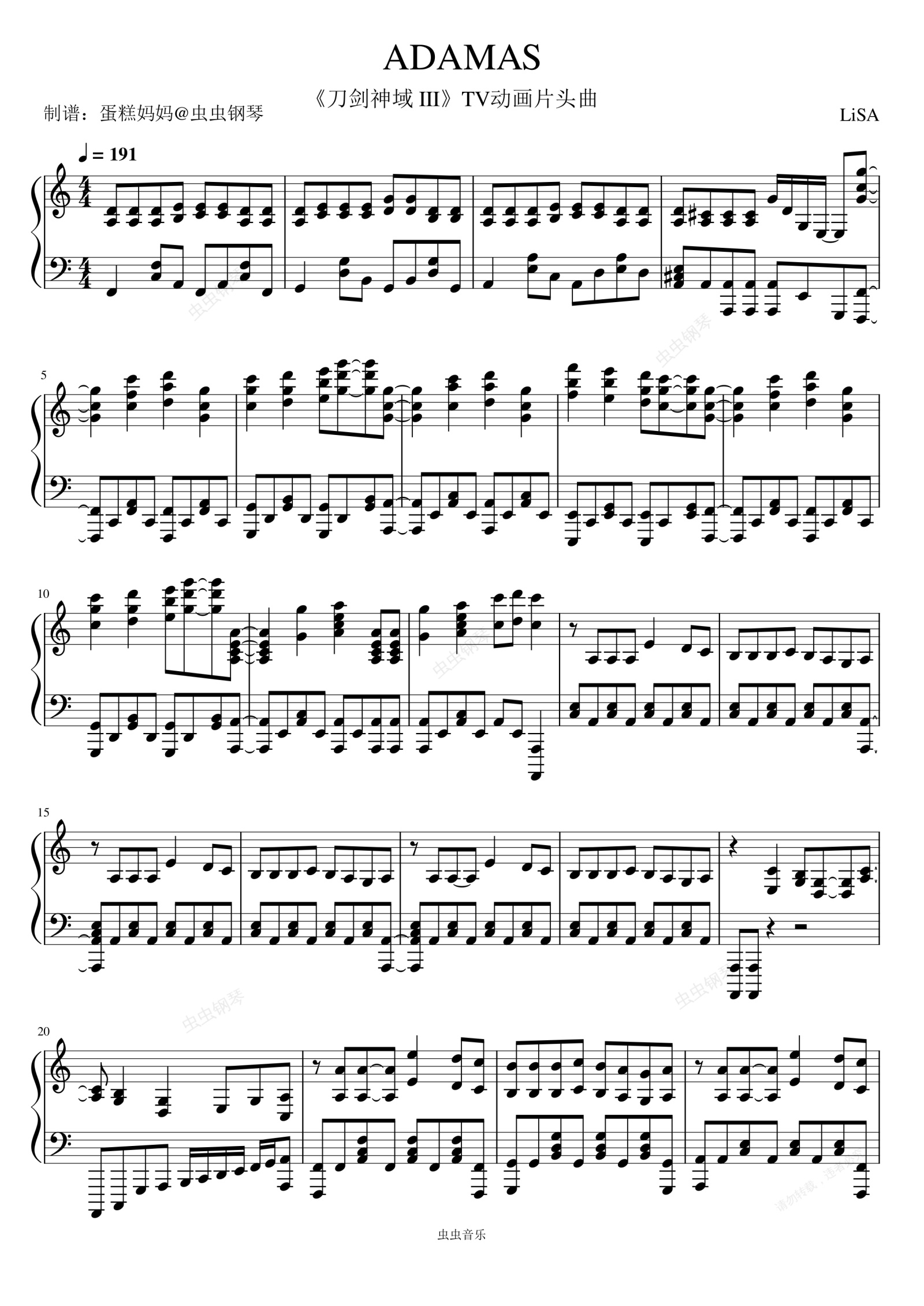 钢琴谱:ADAMAS (《刀剑神域 Ⅲ》TV动画片头曲) - LiSA (織部里沙)
