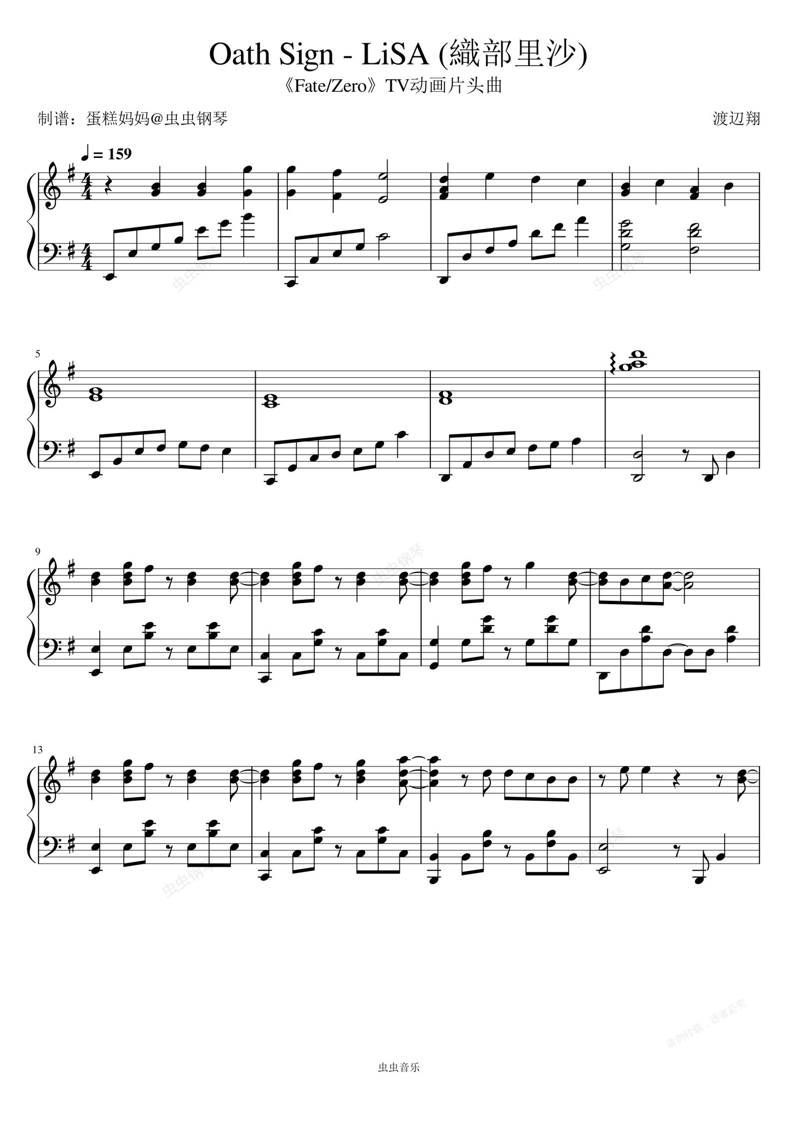钢琴谱:oath sign (《Fate/Zero》TV动画片头曲) - LiSA (織部里沙)