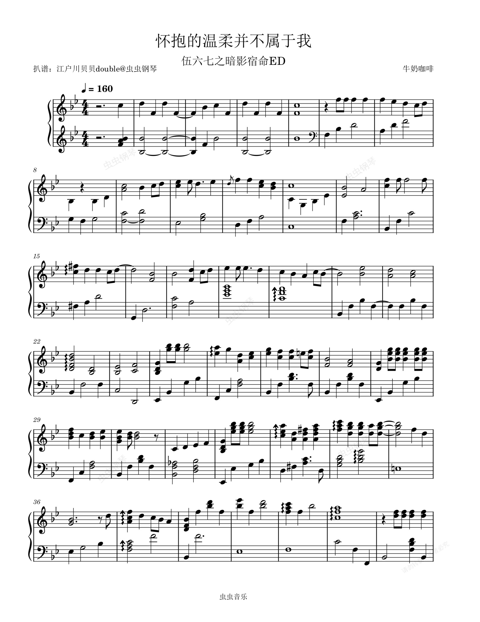钢琴谱:【伍六七之暗影宿命】ED《怀抱的温柔并不属于我》(牛奶咖啡)