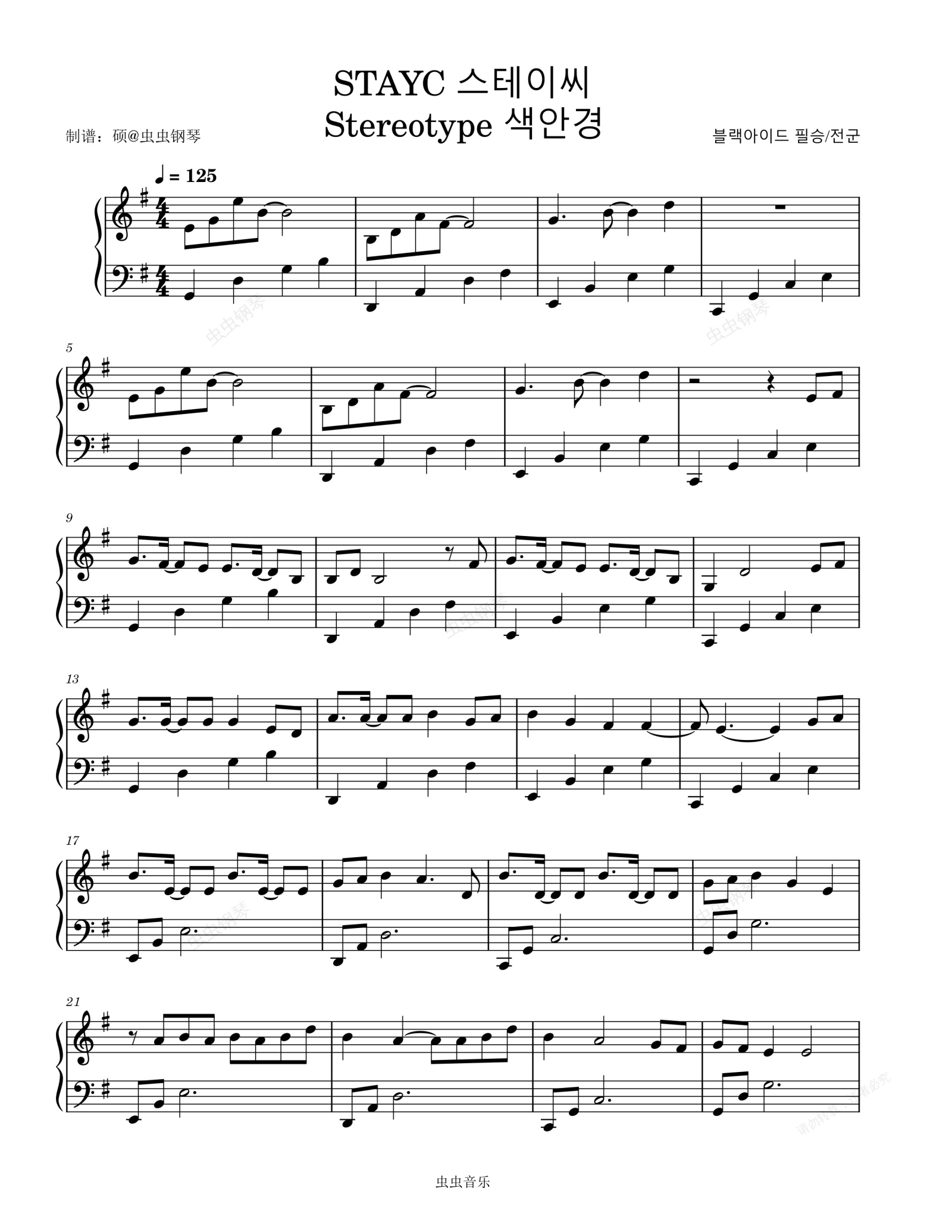 钢琴谱:색안경 (STEREOTYPE) - STAYC (스테이씨)