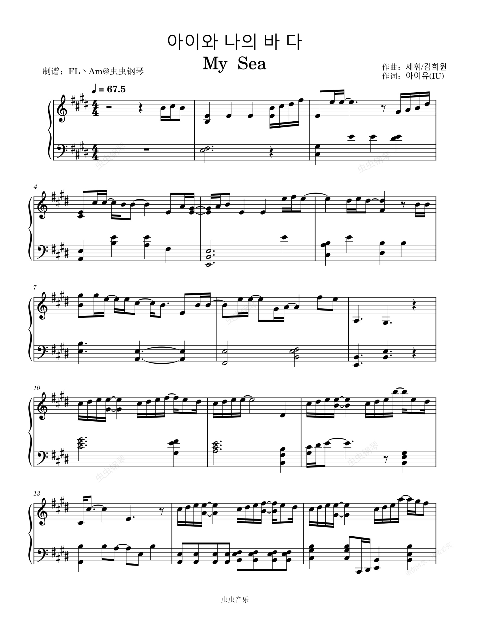 钢琴谱:아이와 나의 바 다 (My Sea)