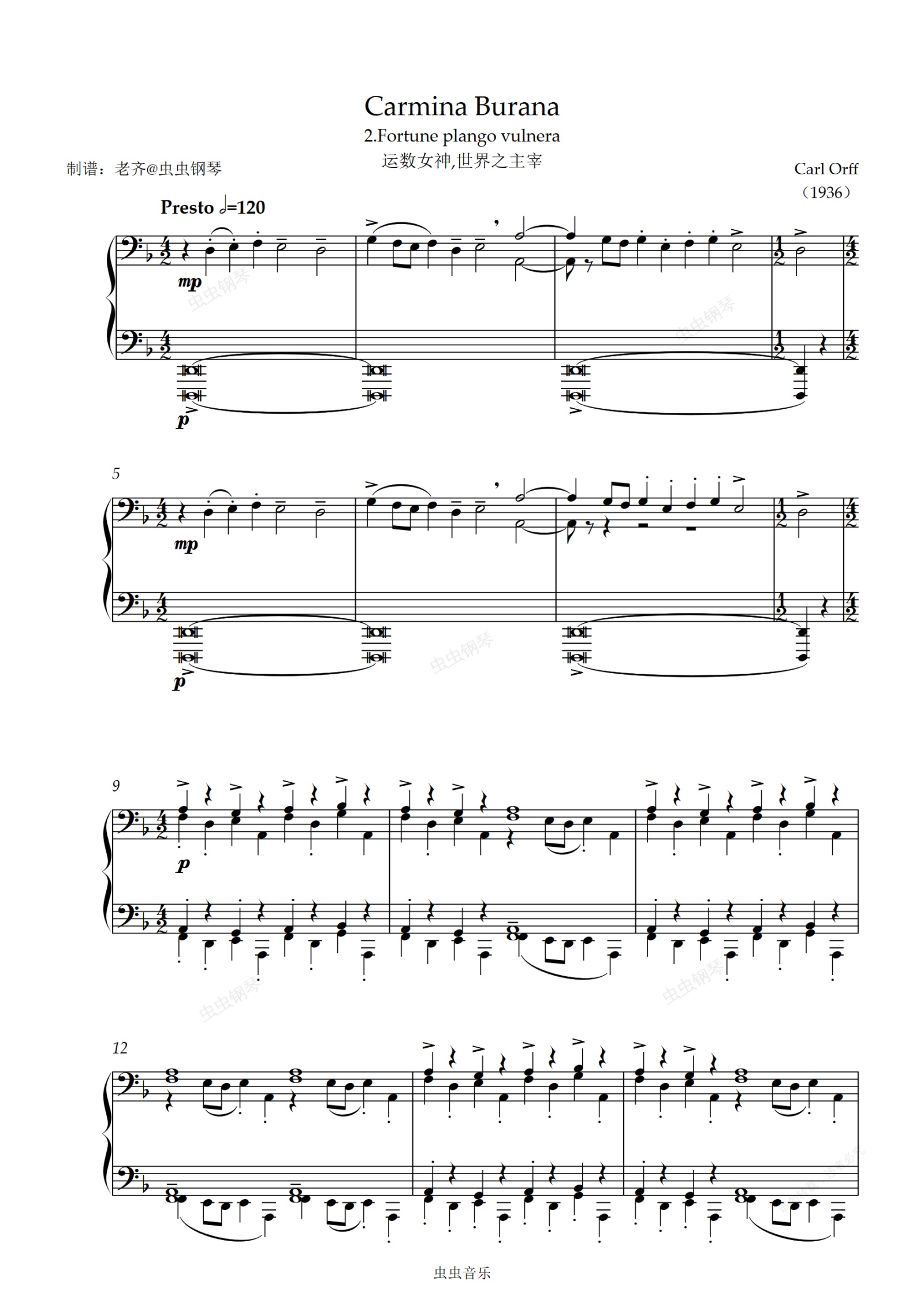 钢琴谱:【布兰诗歌】2.运数女神,世界之主宰 Fortune plango vulnera