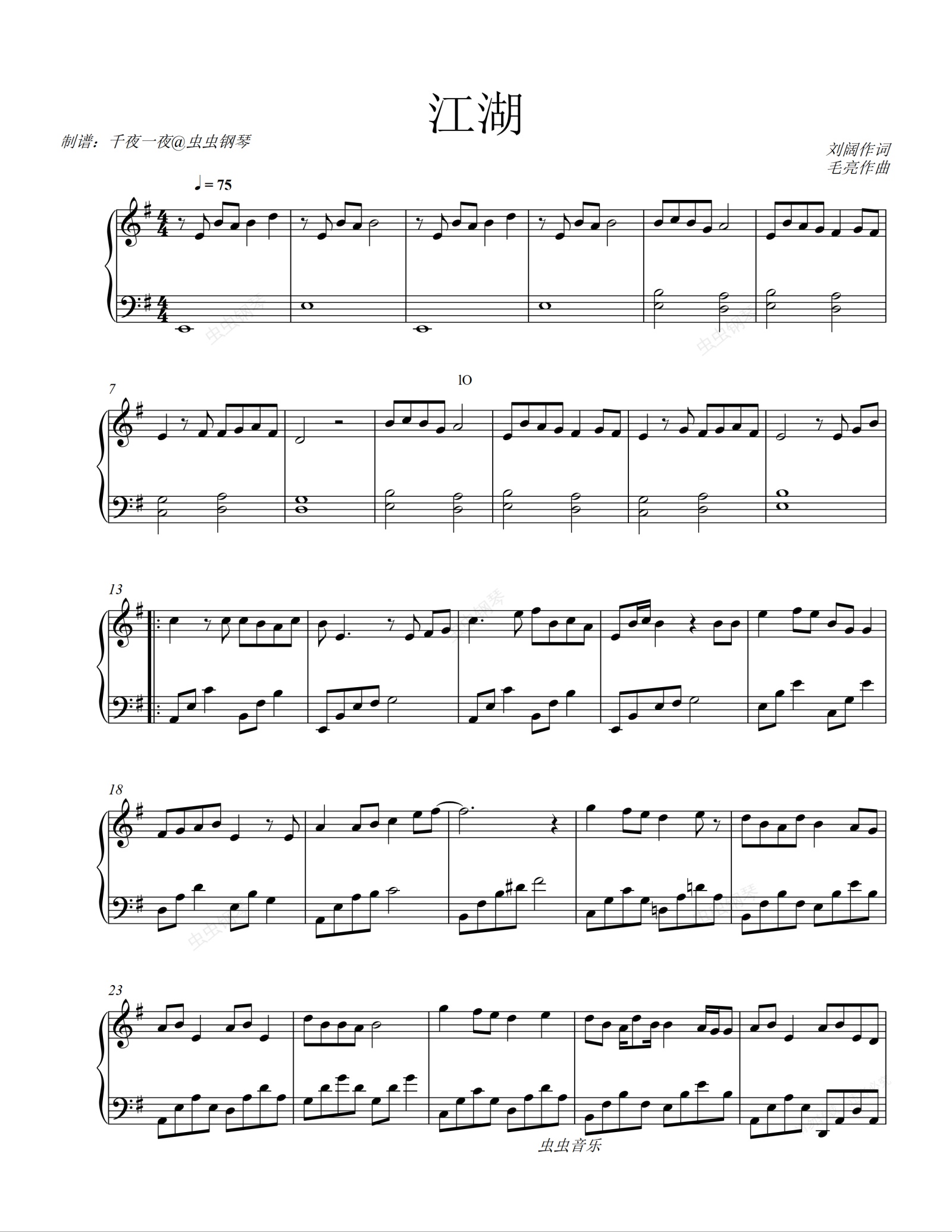 钢琴谱:江湖--画江湖之不良人-主题曲