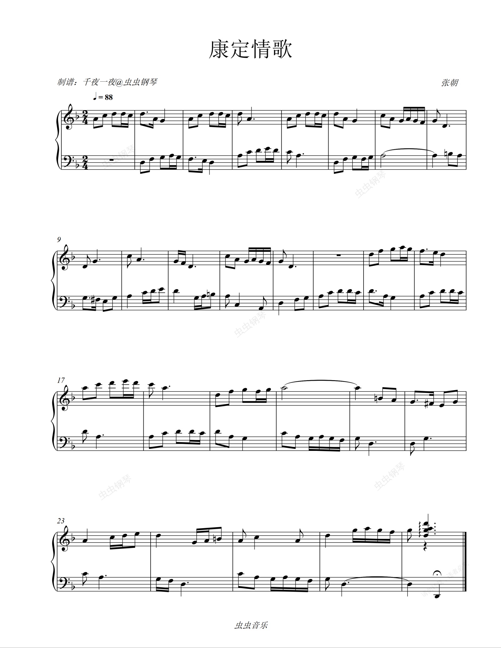 钢琴谱:中国民歌:康定情歌(跑马溜溜的山上)